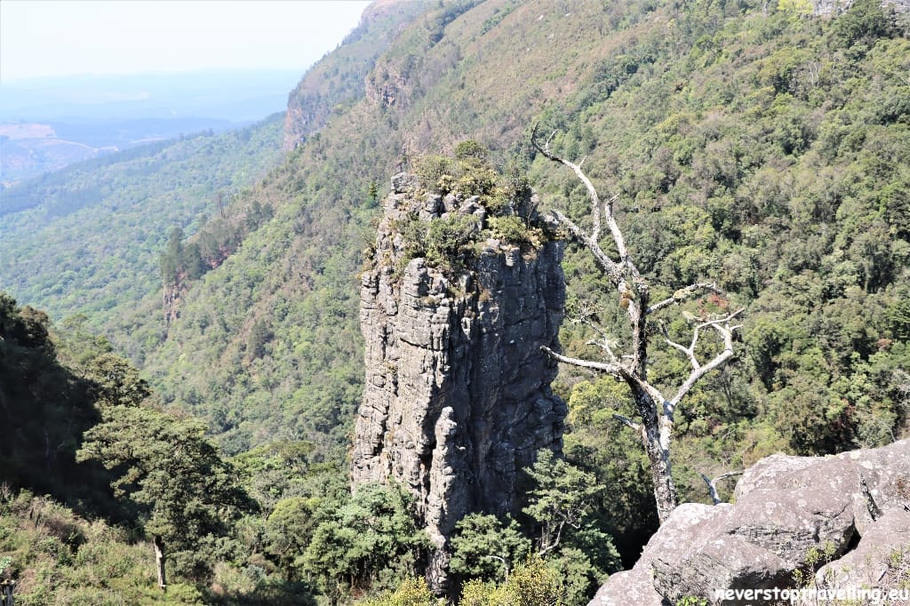 Niet voor niks Godās Window genoemd. Een prachtig uitzichtspunt kijkend op het Lowveld/Highveld massief. Je kunt duidelijk het onderscheid zien van het lage veld en het hoge veld. Bij Godās Window zijn wandelpaden die je naar de verschillende uitzichtspunten navigeren. Helemaal bovenaan het wandelpad kom je in een hele kleine natuurlijke jungle. De uitkijkpunten van Godās Window zijn werkelijk schitterend, daarnaast zijn er diverse souvenirsstalletjes aanwezig bij de parkeerplaats. Stukje verder tref je Wonder Vierw aan, een leuke stop maar de uitzichten hier zijn niet zo bijzonder.