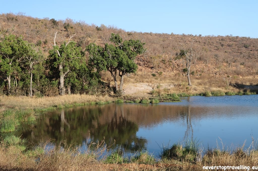 Net buiten de gate van Madikwe Game Reserve tref je de Molatedi Dam aan, gesloten voor publiek maar als je de bewaking een beetje lief aan kijkt, raak je zeker even binnen. Prachtige uitzichten over de omgeving!