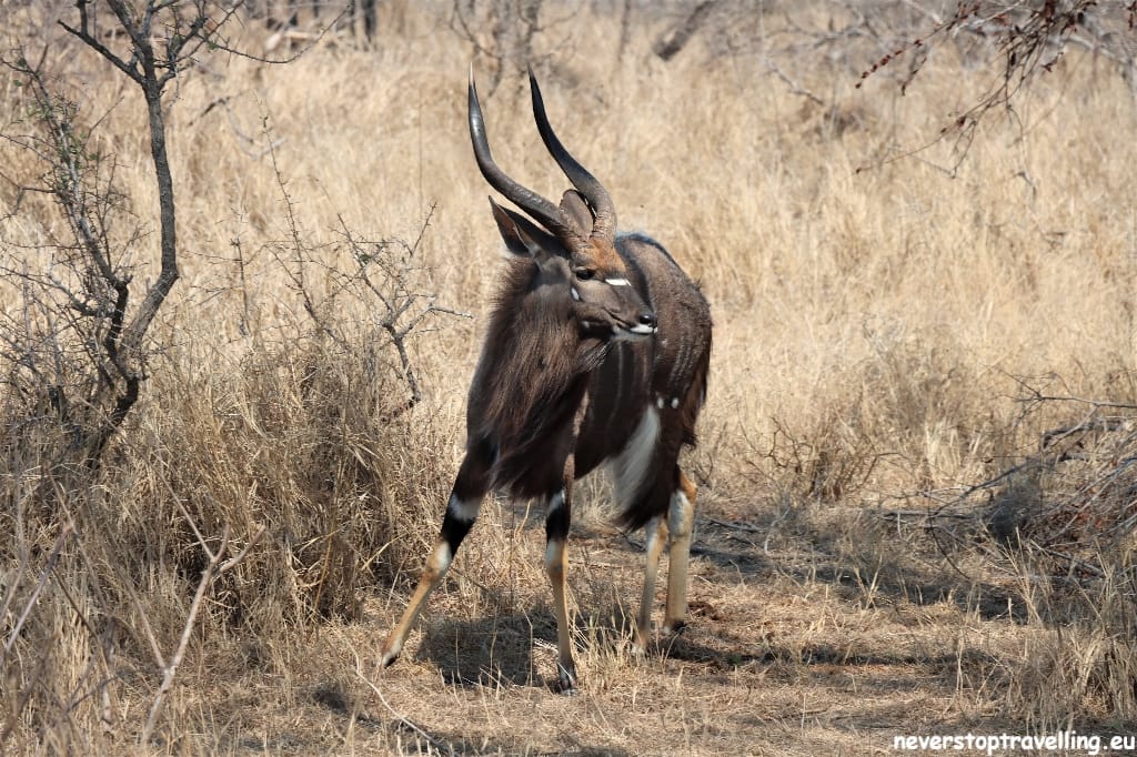 Uiteindelijk komen we aan bij de Pafuri Gate van Kruger, na wat incheck zaken, kunnen we eindelijk het Park in! De Makuleke-concessie is een afgelegen 24.000 hectare grote concessie, de grootste en meest biodiverse in het Kruger National Park. Tot 75% van de totale biodiversiteit van het park komt hier voor op een oppervlakte van slechts iets meer dan 1% van de totale omvang van het park. Nyala, elandantilope en bosvarken leven vredig naast zebra’s, impala’s, gnoes en wrattenzwijnen. De grote kuddes olifanten in de regio genieten van de luxe van seizoensmigratie over de niet-omheinde grens van het park met buurland Zimbabwe. Inheemse buffels en witte neushoorns evenals een groot aantal grote roofdieren completeren de soortenrijke megafauna, die kan worden waargenomen tijdens gamedrives in open 4×4-voertuigen of te voet tijdens een bushwandeling.