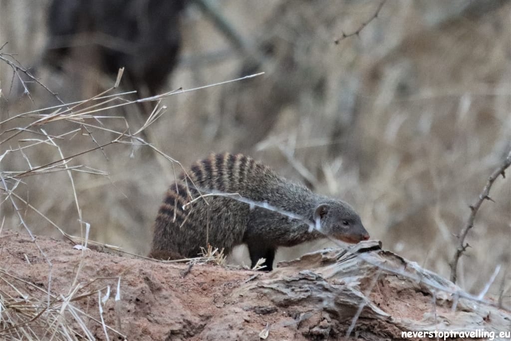 We gebruiken onze dag hier om te genieten van het park en de rust! We stappen wel om 05.30 uur uit bed om op pad te gaan voor een Bush-Walk. Te voet door de Afrikaanse natuur levert weer informatie en beelden op die je vanuit een Safari voertuig wat minder snel op pakt. Sam, onze gids, laat ons alles zien over de sporen van dieren, de uitwerpselen, bomen en planten die hier ook vaak voor medische doeleinden worden gebruikt. Erg bijzonder om te voet de giraffen e.d. tegen te komen! Hier leven wel buffels en hyena’s maar gelukkig geen leeuwen e.d. Je kunt hier dus met een gerust hart te voet op pad!