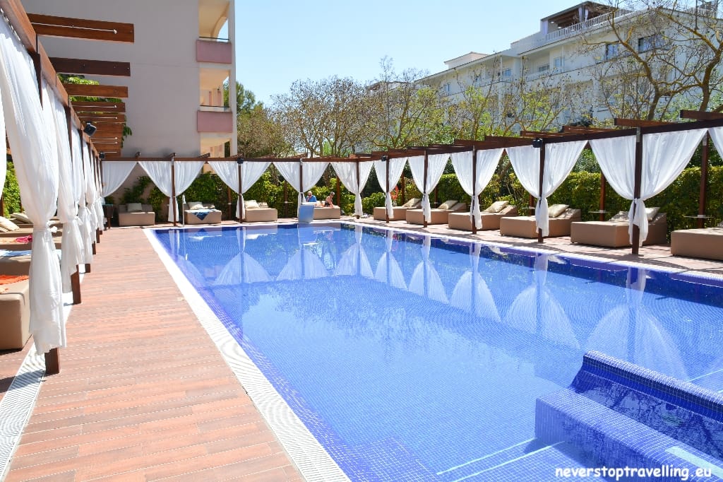 Hotels en resorts zijn er in verschillende soorten, maten en stijlen; in alle prijsklassen. De meeste hotels liggen aan de zee. Bij alle hotels zijn één of meerdere zwembaden. De sfeer in hotels is veelal in frisse en gezellige mediterraanse sferen. Een aantal hotels zijn in het bijzonder ingesteld op vitaliteit, sporten en gezondheid, met veel sportfaciliteiten en gezond eten. O.a. parkeerplaats voor fietsen, uitgebreide healty-menukaart, 40 meter zwembad etc. afgelopen jaren zijn er een groot aantal hotels van 3 naar 4 sterren gegaan. Veel zijn er gerenoveerd in 2020-2021, in de Corona-periode.