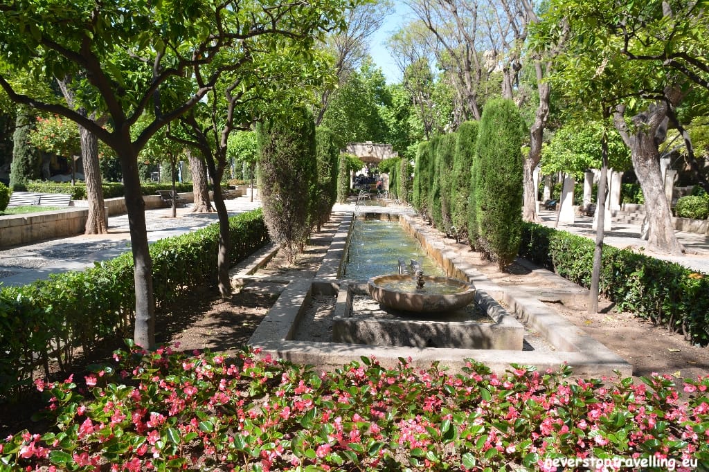Tevens zijn er grote Arabische tuinen, die veelal versierd zijn met sinaasappelbomen. De inrichting van de tuin is op aantal plaatsen het “spelen met water” te zien; dan lijkt het alsof het koeler is. Het is gerecycled water.