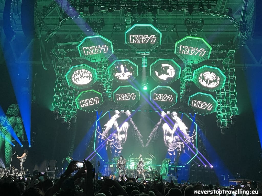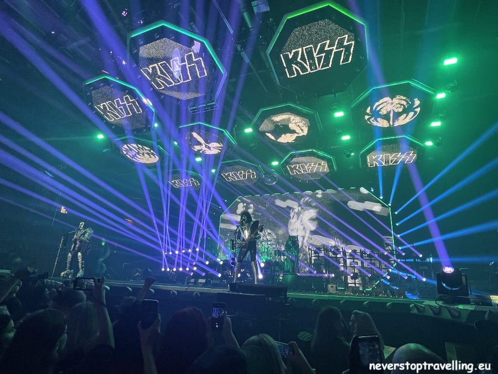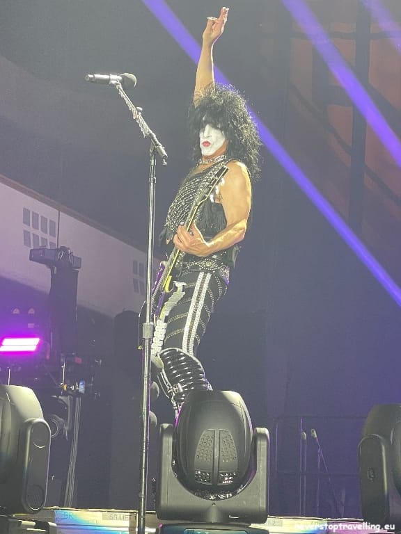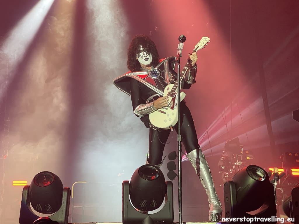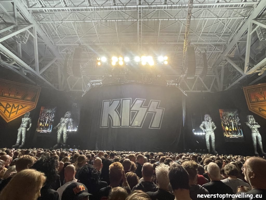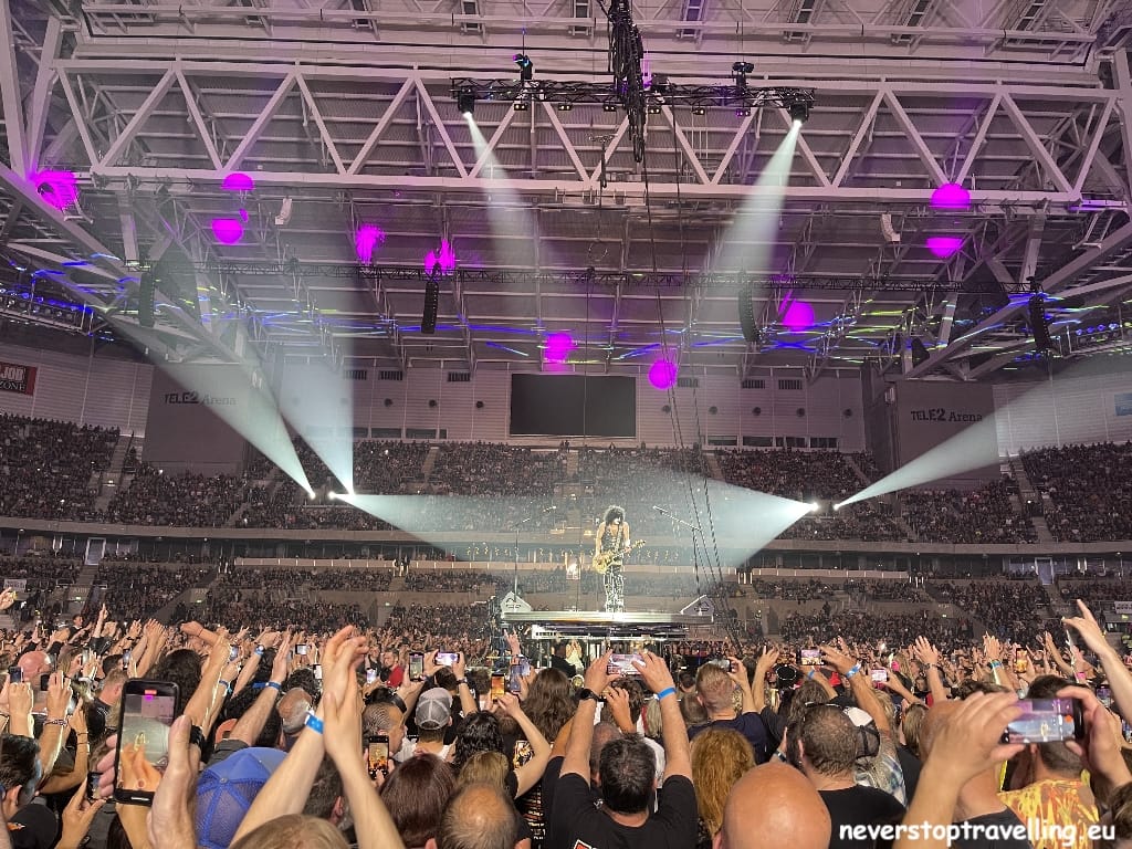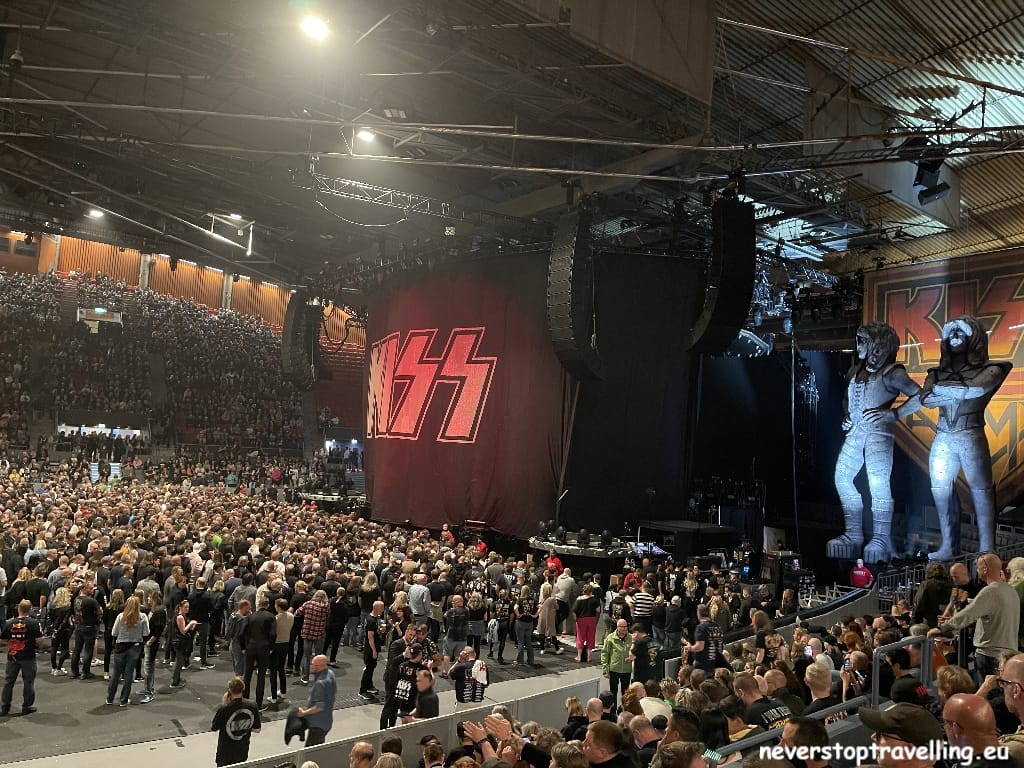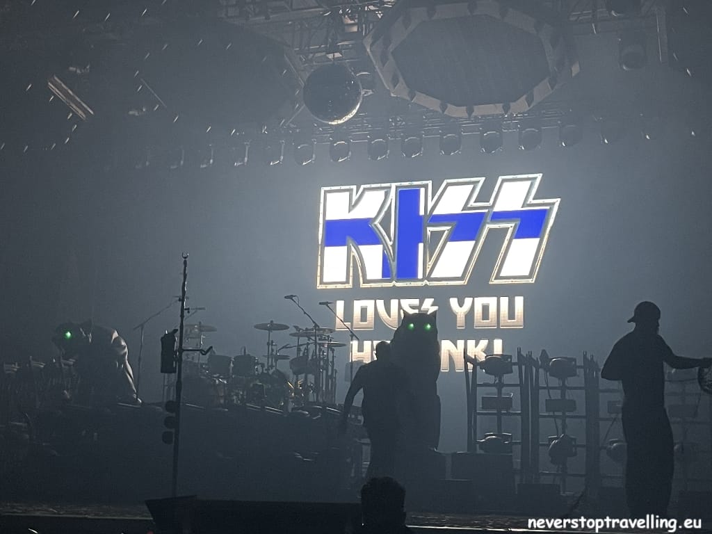 Aanvankelijk zou KISS hun show in de Hartwall Arena spelen maar aangezien de eigenaren Russen zijn, zijn alle shows daar geskipt en is de zaal dicht (Boycot). De show is dus verplaatst naar de Ice Hall. Prachtige, wat oudere (1966), zaal en qua capaciteit wel een stuk kleiner als de Hartwall Arena. Voor deze ronde misschien niet zo erg want de Ice Hall is niet uitverkocht met een capaciteit van ongeveer 8.000 toeschouwers. Wellicht vandaag de kleinste zaal van deze EU Tour, waar Stockholm zeker de grootste zaak was van deze Tour. We kunnen deze avond erg dichtbij het podium staan, rechterzijde oftewel de kant van Tommy Thayer. Groot of kleine zaal, voor KISS is het altijd 100%, ook deze avond walsen de heren op ongelooflijke wijze Helsinki plat. Maximaal genieten en na Dortmund, Antwerpen, Hamburg en Stockholm de beste show tot zover. Genieten!!