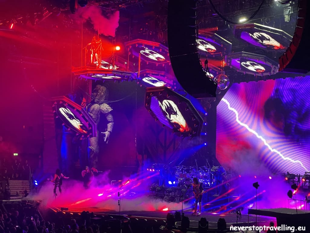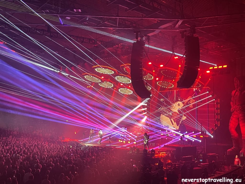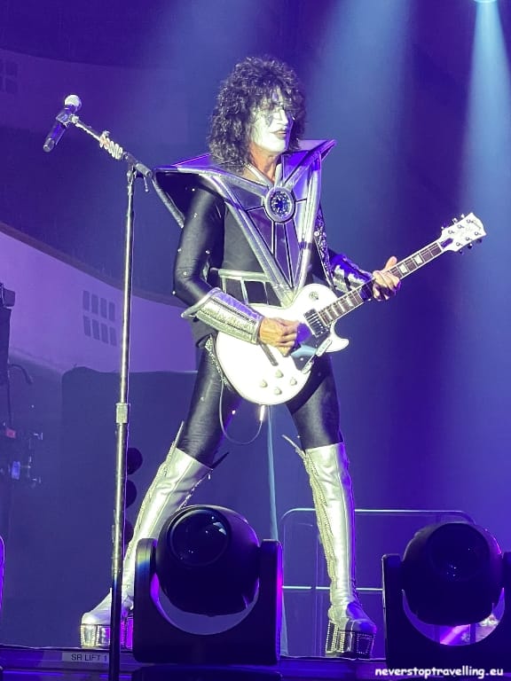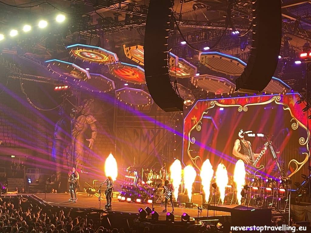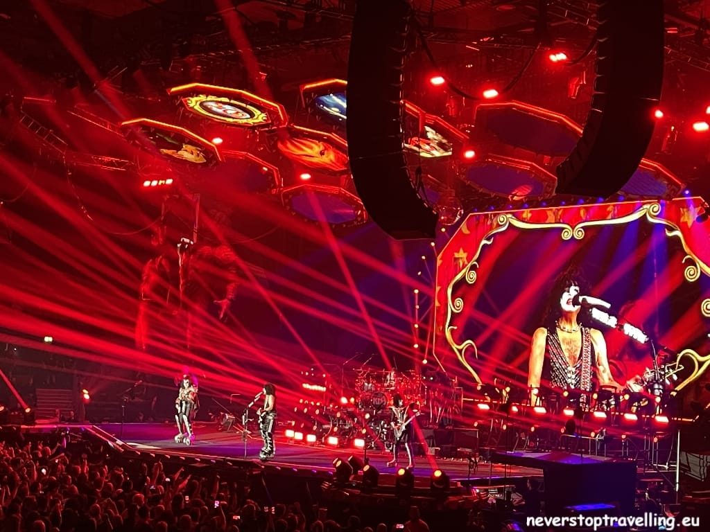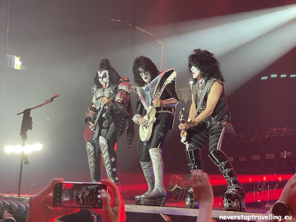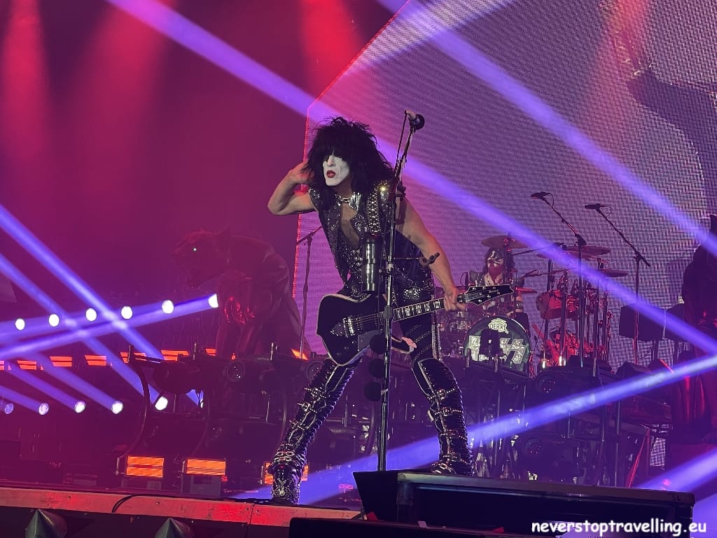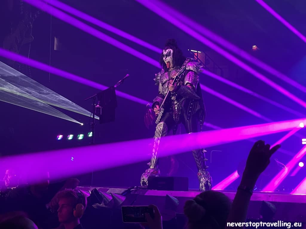 Aanvankelijk zou KISS hun show in de Hartwall Arena spelen maar aangezien de eigenaren Russen zijn, zijn alle shows daar geskipt en is de zaal dicht (Boycot). De show is dus verplaatst naar de Ice Hall. Prachtige, wat oudere (1966), zaal en qua capaciteit wel een stuk kleiner als de Hartwall Arena. Voor deze ronde misschien niet zo erg want de Ice Hall is niet uitverkocht met een capaciteit van ongeveer 8.000 toeschouwers. Wellicht vandaag de kleinste zaal van deze EU Tour, waar Stockholm zeker de grootste zaak was van deze Tour. We kunnen deze avond erg dichtbij het podium staan, rechterzijde oftewel de kant van Tommy Thayer. Groot of kleine zaal, voor KISS is het altijd 100%, ook deze avond walsen de heren op ongelooflijke wijze Helsinki plat. Maximaal genieten en na Dortmund, Antwerpen, Hamburg en Stockholm de beste show tot zover. Genieten!!
