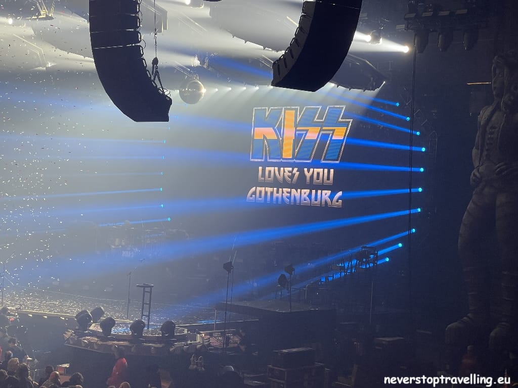 Na 30 jaar vriendschap gaat het dan vanavond toch echt gebeuren, ons zevende en laatste KISS concert samen in het schitterende Scandinavium van Gotenburg. Sold-out show! Natuurlijk nog even wat zaal-shots met Roney, Vanessa uit Duitsland en het Zweedse koppel dat trouwde op het podium tijdens de Sound-Check in Stockholm, Kattis Westerfors en Daniel Westerfors (RIP), proficiat! De show gezien van uit de tribune aan Tommy’s kant, KISS weer in topvorm want haarscheurtjes zijn er niet te ontdekken tijdens deze tour, geweldig! Natuurlijk beleven we na Rock n Roll all nite even een emotioneel momentje, Roney en ik samen. Dit was het dan na 30 jaar, maar onze vriendschap overwint KISS en zal altijd blijven. Wederom een A night to remember, deze keer in het Scandinavium.