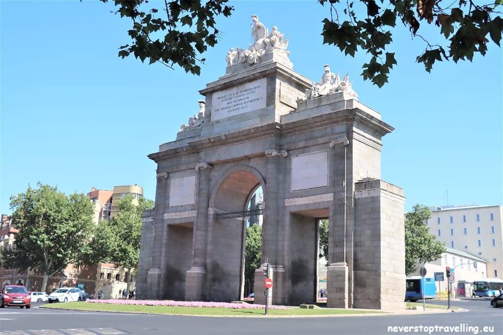 Deze triomfboog (Toledo Gate), gelegen tussen de wijken La Latina en Embajadores, werd opgericht ter herdenking van de aankomst in Madrid van Fernando VII el Deseado. Het werk vervangt andere eerdere deuren die zich sinds de 16e eeuw in de buurt bevinden, hoewel het directe precedent een boog is die José Bonaparte, de Franse koning, opgelegd door zijn broer Napoleon, tussen 1811 en 1812 in opdracht van de Spaanse architect Silvestre Pérez, die nooit is aangekomen te houden.