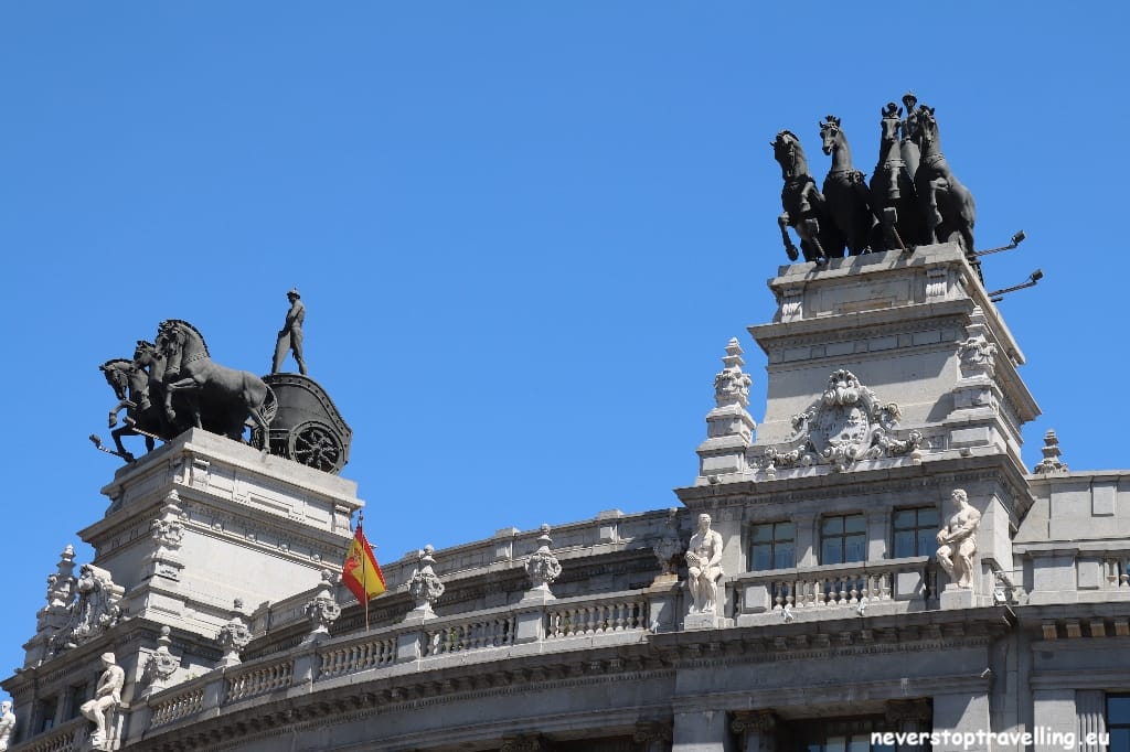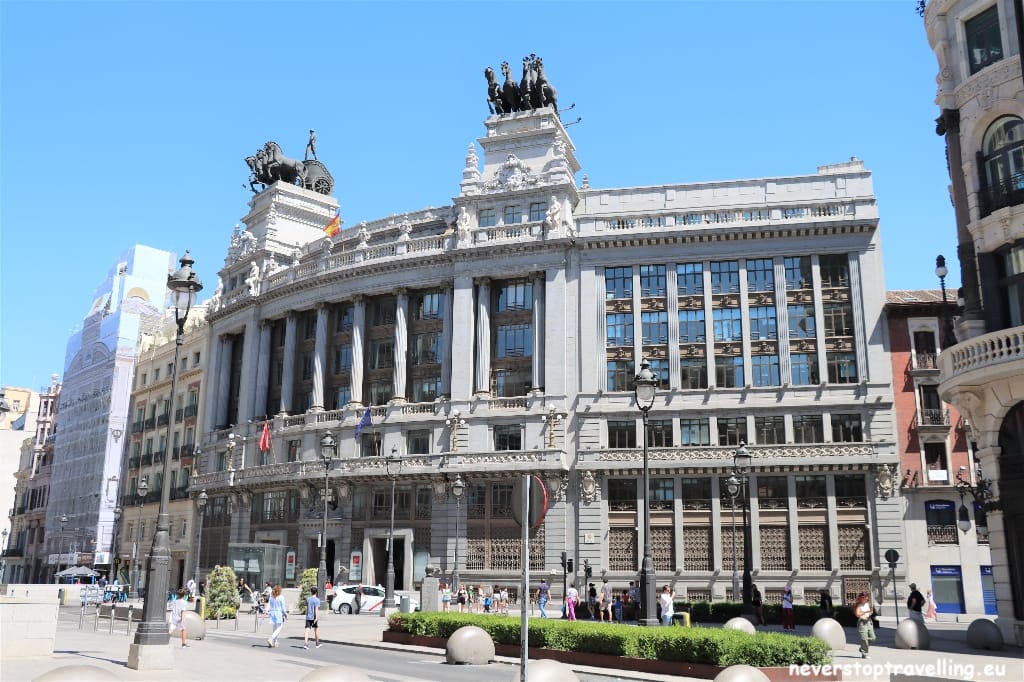 Wandelen door de straten van Madrid is een lust voor het oog, prachtige gebouwen sieren de straatbeelden. Natuurlijk is de metro ook een prima optie maar je ziet boven de grond meer dan ondergronds. Het Plaza de Cibeles is een van de bekendste pleinen in de Spaanse hoofdstad. Op dit verkeersplein komen enkele belangrijke straten samen: de boulevards Paseo del Prado, Paseo de Recoletos, Paseo de la Castellanaen de Calle de Alcalá. Midden op het plein staat een grote ronde fontein met een marmeren beeld (Fuente de Cibeles) van de Romeinse godin van de vruchtbaarheid Cybele (in het Spaans godin Cibeles). Zij zit in een strijdwagen die door twee leeuwen wordt voortgetrokken. Eind 18e eeuw werd de fontein in opdracht van Koning Karel III ontworpen door de architect Ventura Rodriguez. De fontein wordt ook wel gezien als het symbool van Madrid en zeker bij grote prijzen van voetbalclub Real Madrid komen de fans massaal naar Plaza de Cibeles om dit te vieren.