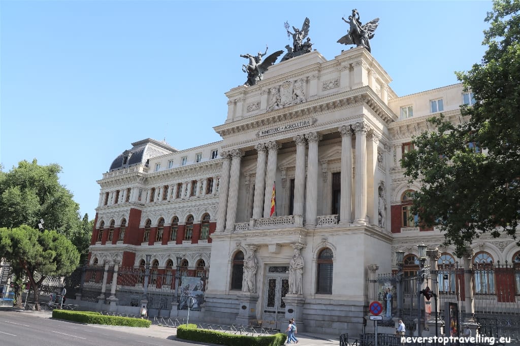 Rondom het plein Plaza de Cibeles liggen enkele bekende gebouwen zoals het Palacio de Comunicaciones. Dit voormalige hoofdpostkantoor uit 1909 dient sinds 2007 als stadhuis van Madrid en als werkplaats voor de burgemeester van Madrid. Door de mooie versieringen heeft het gebouw twee bijnamen: “Onze Lieve vrouwe van de Post”, of “De bruidstaart”. Andere markante gebouwen rondom Plaza de Cibeles zijn De Banco de España, de centrale bank van Spanje en het Palacio de Buenavista uit 1707 voor de generalen van het Spaanse Leger.