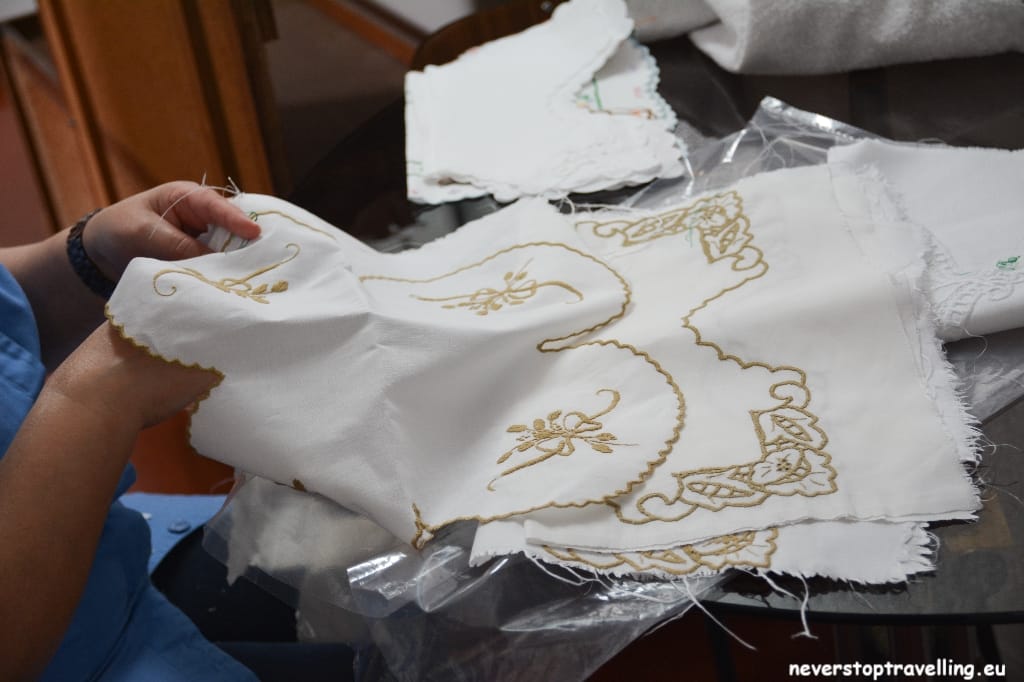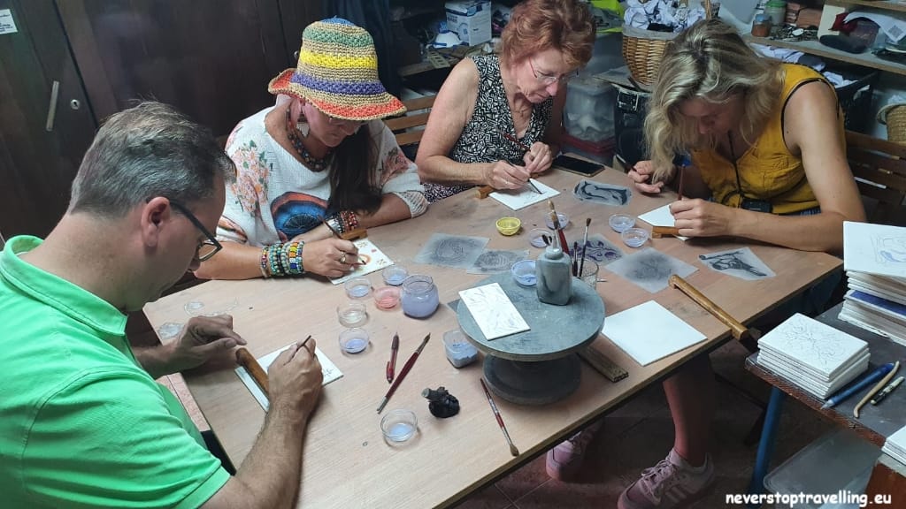 Deze tour is gewijd aan onze traditionele kunsten en ambachten, waar we de productieprocessen van werken in klei, borduurwerk en keramiek kunnen observeren vanaf het begin van het proces tot de laatste fase. Onze tour begint met een bezoek aan de aardewerkfabriek ofwel de Pottenbakker van São Bento, waar je een rondleiding door de ruimte krijgen en waar je prachtige lokaal geproduceerde stukken kunnen zien, naast de typische “pot” die wordt gebruikt om de traditionele rundvleesstoofpot “Alcatra” te koken. De buurman heeft een koffiebranderij en nodigt ons uit voor een koffieproeverij en aperitiefjes en rondleiding door zijn tuin met o.a. koffiebomen. Daarna gaan we het “meer gedetailleerd werk onderzoeken. We brengen een bezoek aan het Azoren-borduurwerk. Er is veel werk, voor vele honderden vrouwen over het hele eiland, die thuis werken en het is ook een vorm van entertainment van hoge artistieke waarde. Het is een groot bedrijf die handwerk-borduurwerk maken. We krijgen allen een eigen keuze borduurwerk mee als souvenir. Als afsluiting bezoeken we een kleine keramische unit. Daar schilderen we ons “eigen tegeltje”. De traditionele kleuren van het eiland zijn blauw en geel.