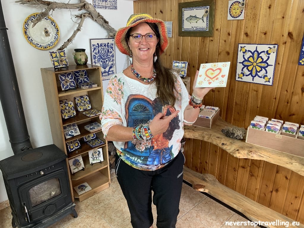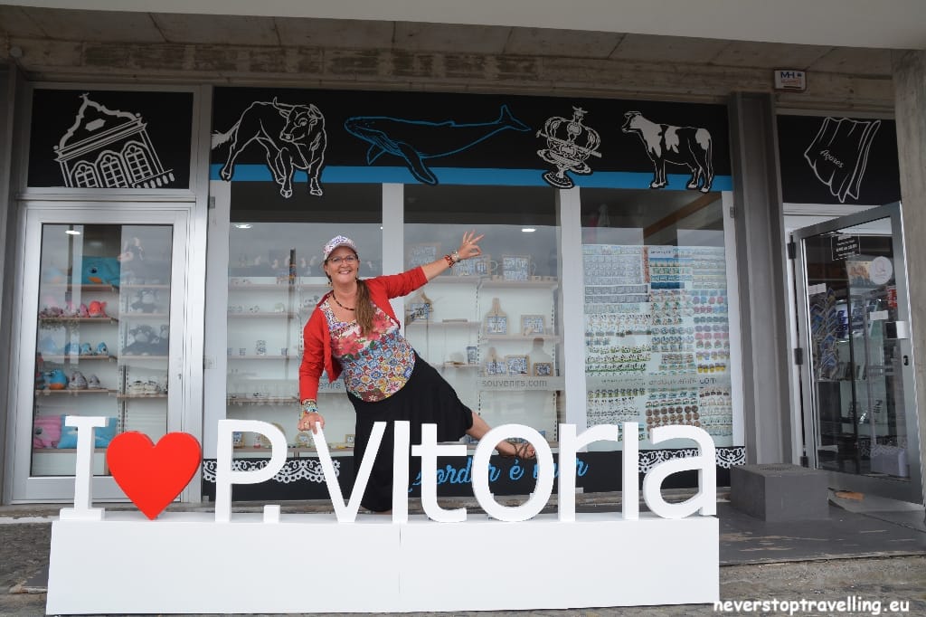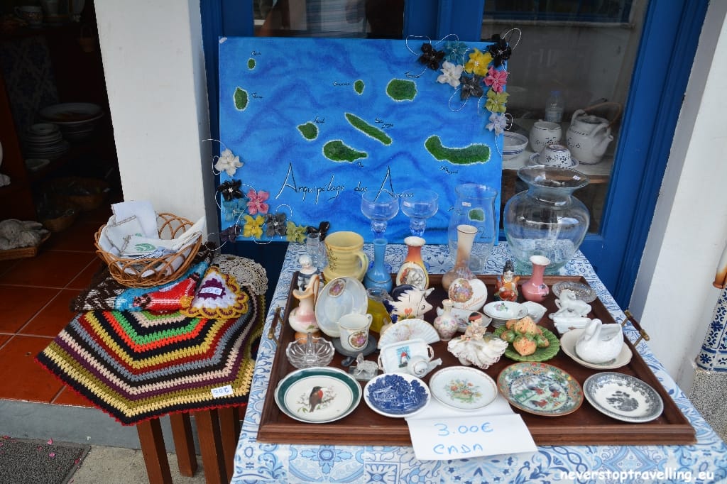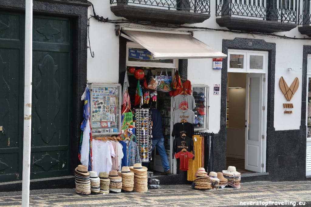 Naar de plaats Praia Vitoria. Een heel gezellig plaatsje. Met leuke winkeltjes en een hele grote souvenirwinkel.