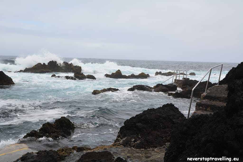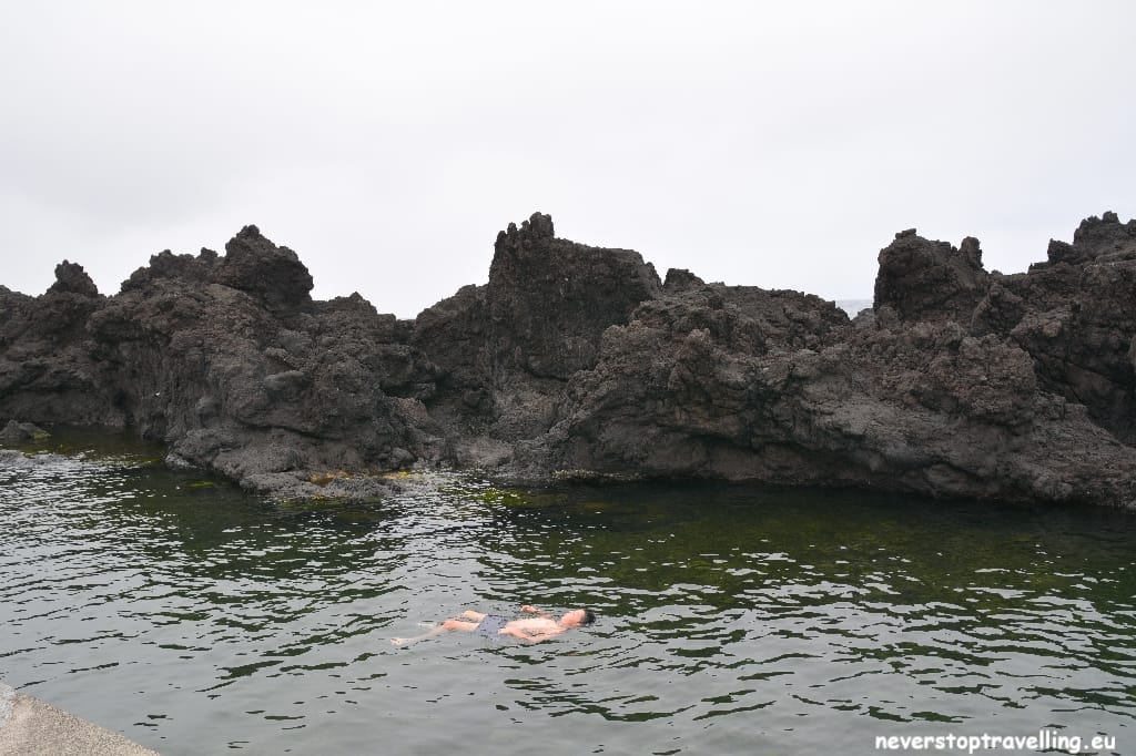 Natuurbad bij biscoitos in lava van de Vulkaan Laatste uitbarsting 1761. Piscinas naturais dos Biscoitos is een natuur zwembad in de vulkanische rotsen. Waar je lekker kunt poedelen na een dag wandelen. Je vindt dit natuurzwembad bij Calheta dos Biscoitos.