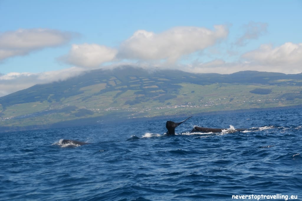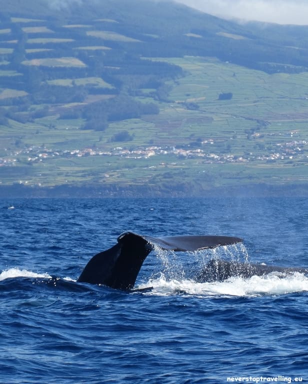 Walvissen spotten doe je hier met Picos de Aventura. De kans is heel groot op de Azoreneilanden dat je dolfijnen en walvissen ziet. In de Atlantische Oceaan rond de Azoren komen meer dan 25 soorten walvissen en dolfijnen voor. Je hebt veel kans op het zien van potvissen, gewone dolfijnen, tuimelaars en risso dolfijnen . Verder zijn in bepaalde seizoenen ook baleinwalvissen zoals de gewone vinvis, blauwe vinvis en bultrug te zien. We zien verschillende, o.a de bekende Springvale walvis. We zagen ook veel van de zeer gevaarlijke paarse kwallen. Genaamd; Portuguese oorlogsschip omdat ze zo gevaarlijk zijn bij een beet van één kwal heb je al behoorlijke pijn en bij beten van 20 kwallen ben je dood. ze hebben hele lange tentakels; van meters lang en het laatste deel onzichtbaar.