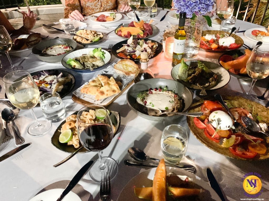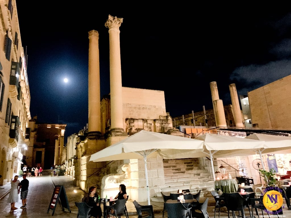Heerlijk diner op terras in Valletta op de laatste avond; genieten