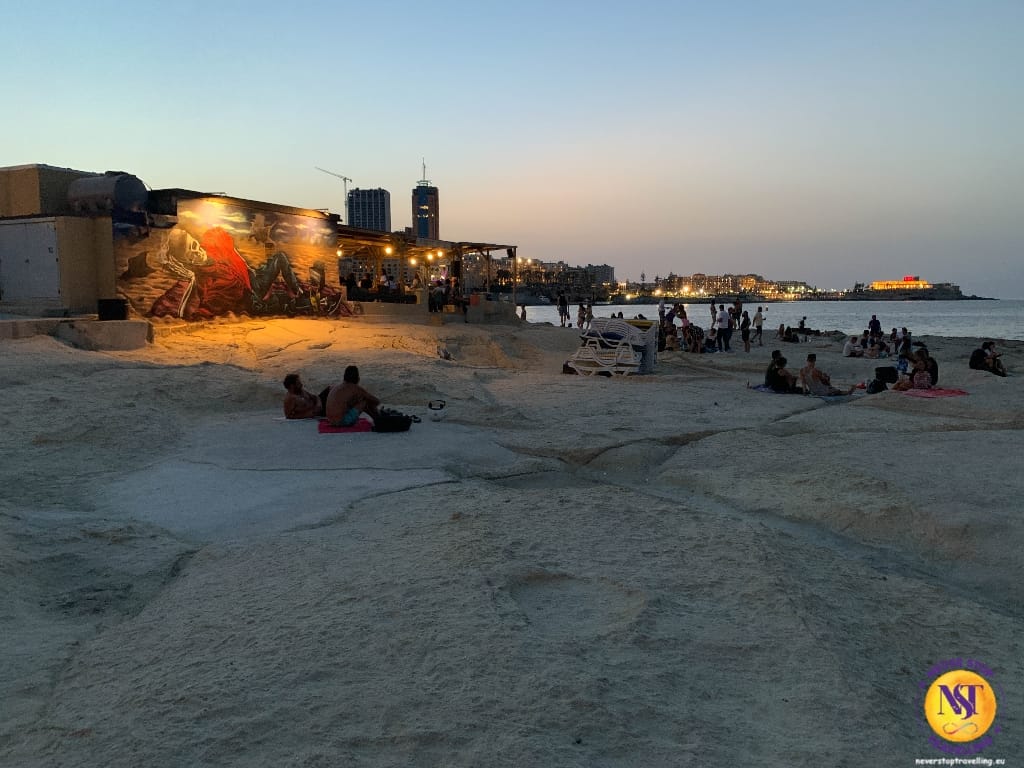 Op naar het strand, lekker relaxen in Sliema; een van de fijnste plaatsen om naar het strand te gaan. Let op je ligt op rotsen, mits je een bedje huurt, dat is ook overal mogelijk.