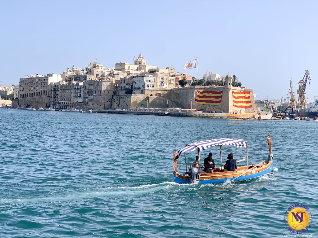 We lunchen in de het gezellige restaurant Rampila, lekker koel in de kelder. We maken de overtocht van Valletta naar de Drie Steden met een typisch Maltese boot.