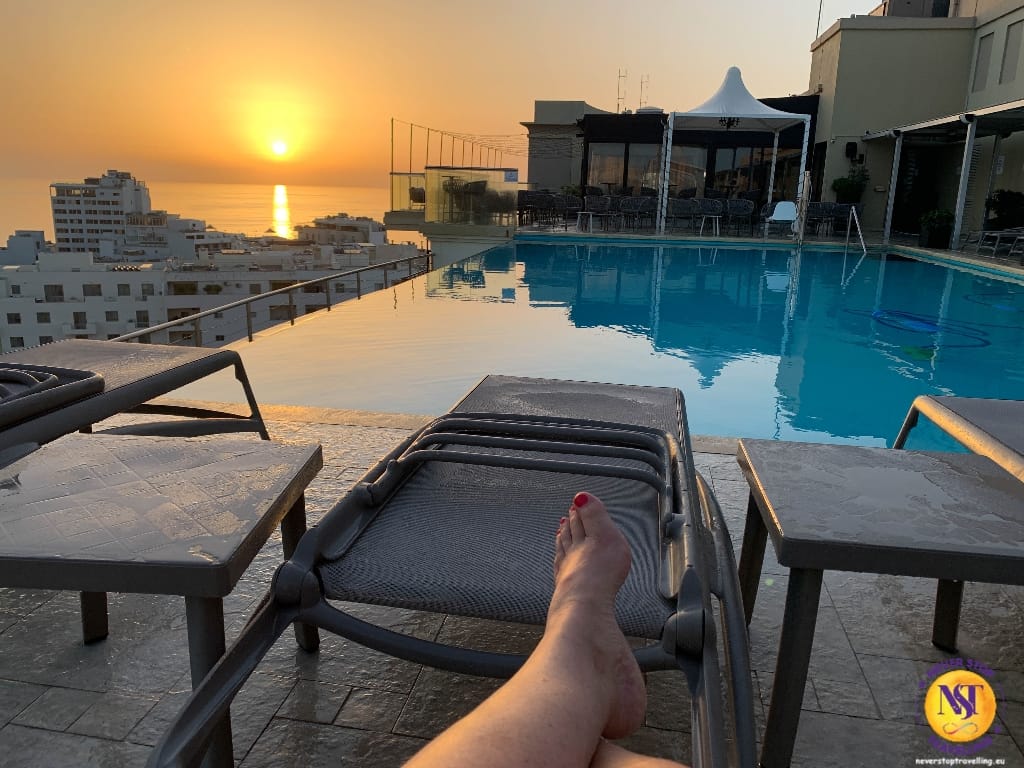 We bzoeken het 5 sterren hotel en Spa: Corinthia Place Hotel voor een showronde van het hotel, gevolgd door een diner. Met grote dank aan: Louise Pullicino – Sales Director, voor de mooie rondleiding in het prachtige hotel en het heerlijke diner, speciaal voor ons buiten bij het zwembad met een prachtig uitzicht.