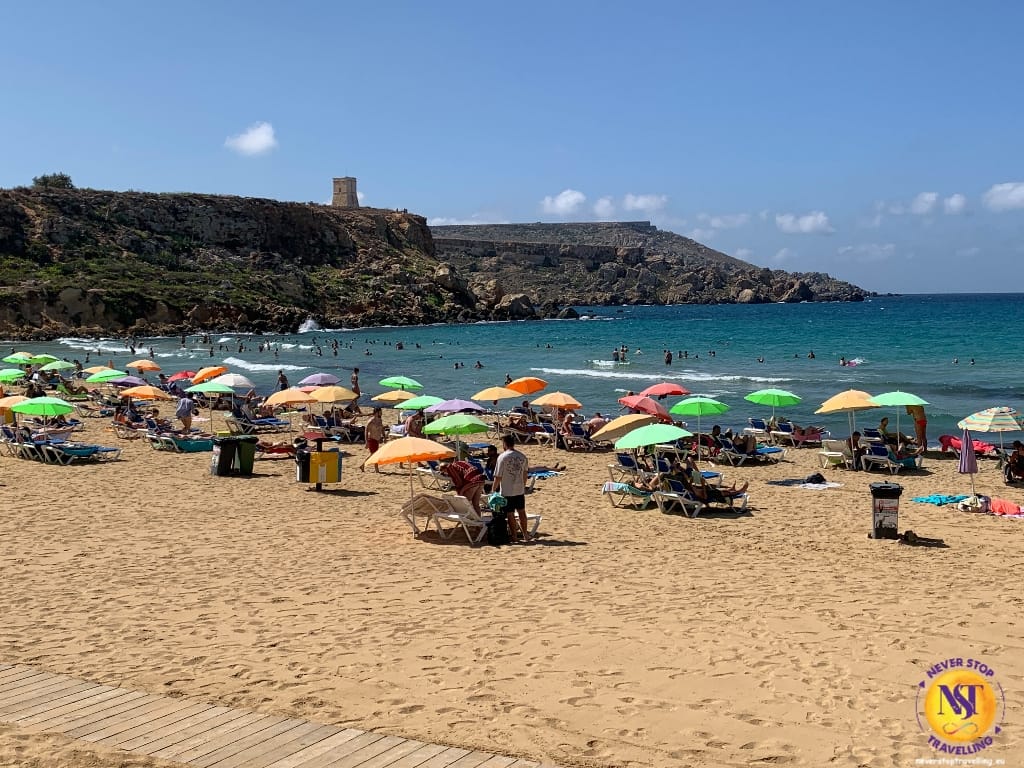 Golden Bay is een populair bezocht strand, mede door de nabijheid van het vijfsterrenhotel Radisson Golden Sands. Net als Għajn Tuffieħa is Golden Bay een zandstrand, maar het is populairder omdat het een groter stuk zand heeft, gemakkelijker toegankelijk is en betere faciliteiten heeft, waaronder een paar restaurants. het is een prachtig strand met fijn zand, rotskliffen en ondiep water.