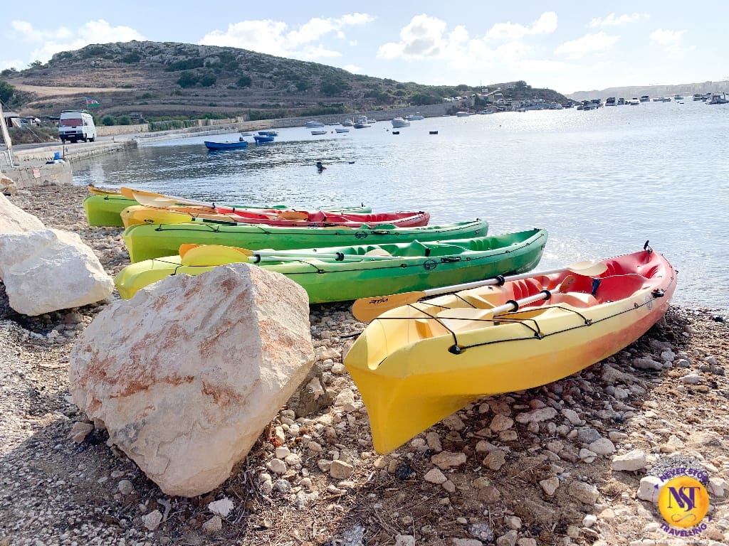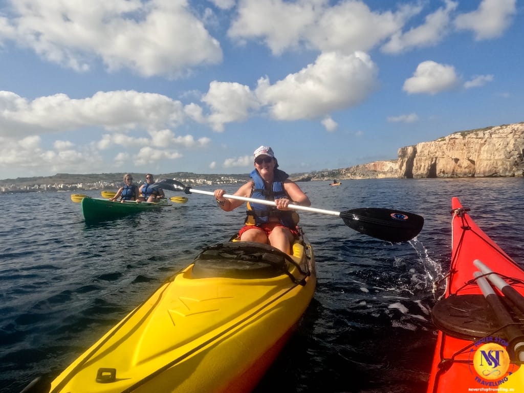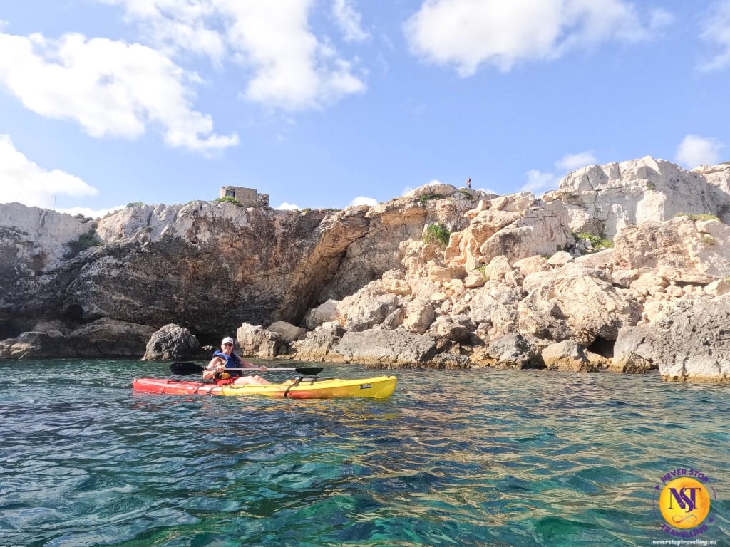 De volgende dag beginnen we de dag op Mistra Bay voor een kajaksessie We kajakken vanuit de Mista Bay, naar enkele grotten in de baai en gaan St. Paul’s Islands verkennen. Met grote dank aan de enthousiaste Alan Chetcuti, eigenaar van Kayak Tours Malta. Super leuke actieve activiteit: zeer zeker een aanrader.