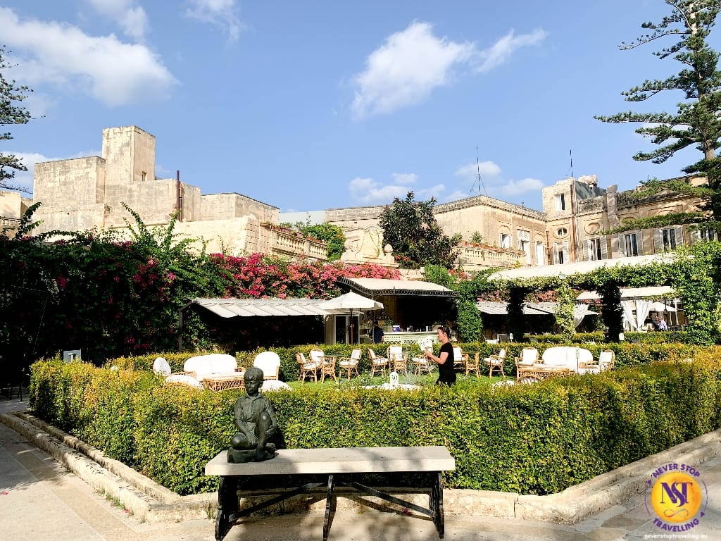 We gaan met openbaar vervoer; de bus en de “Bolt-taxi” nog een keer naar Mdina. Aanrader een lunch of wat zoets eten bij Fontanella Tea garden. Gezellig binnen met airco of met geweldig uitzicht