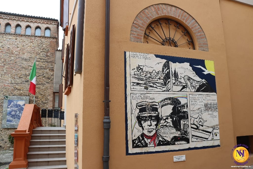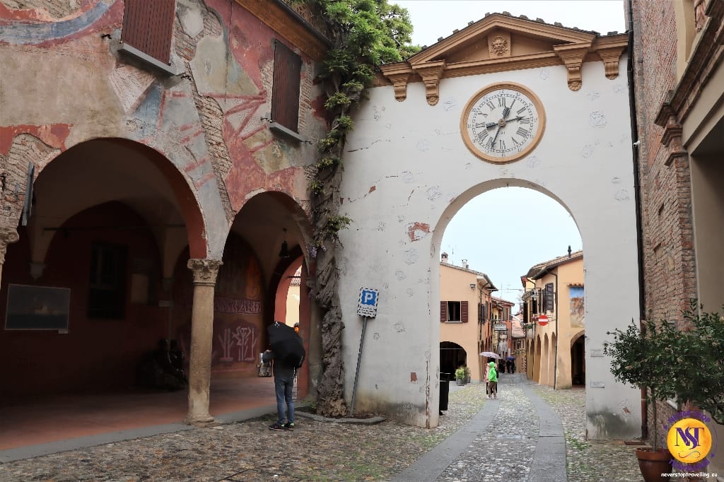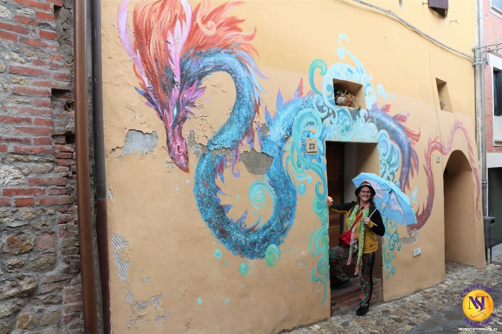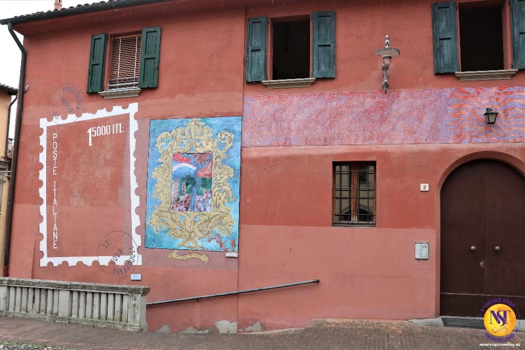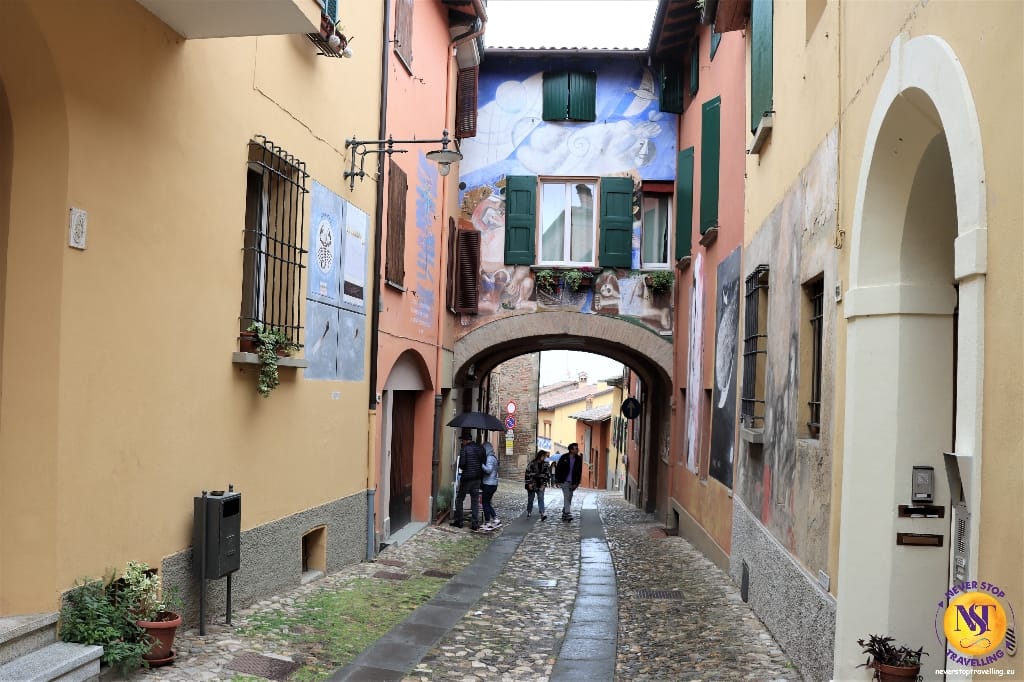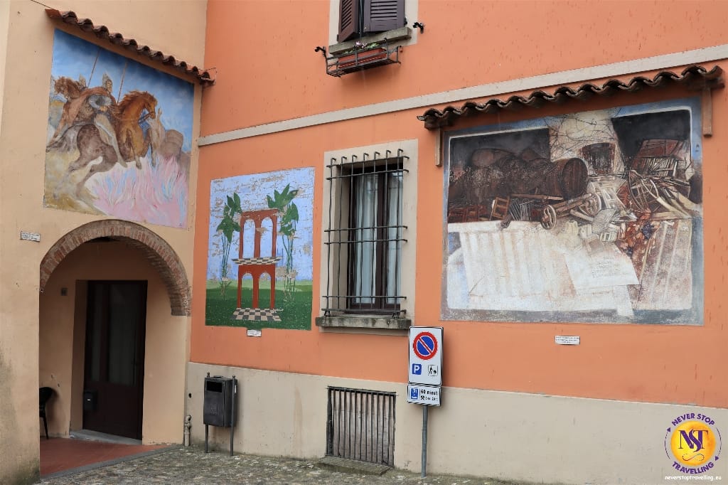 Volgende stop, het schitterende Dozza. Dozza is een Italiaanse gemeente in de provincie Bologna. Dozza staat bekend om zijn festival van de geschilderde muren, dat om de twee jaar in september plaatsvindt. Tijdens dit festival schilderen beroemde nationale en internationale kunstenaars permanente werken op de muren van de huizen. Een plaatselijk herkenningspunt is het kasteel van Dozza, waarvan de kelders Enoteca Regionale Emilia Romagna herbergen, de enoteca en wijnbar gewijd aan oenologische producten van Emilia-Romagna.