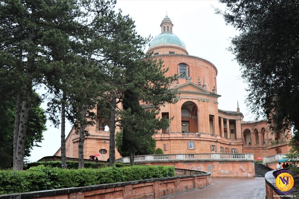 Laatste stop is het heiligdom van de Madonna van San Luca, een schitterende basiliek in de stad die zich bevindt bovenop een beboste heuvel, Colle of Monte della Guardia, zo’n 300 meter boven de stadsvlakte. Als je te voet gaat is het een serieus eindje klimmen en traplopen, je kunt ook vanuit het centrum met een treintje naar de basiliek. Wij hebben deze dag toch een auto en maakte nog even een stop met de auto. Met een aantal gave stops hebben we een goed beeld gekregen van de omgeving waarin Bologna zich bevindt.