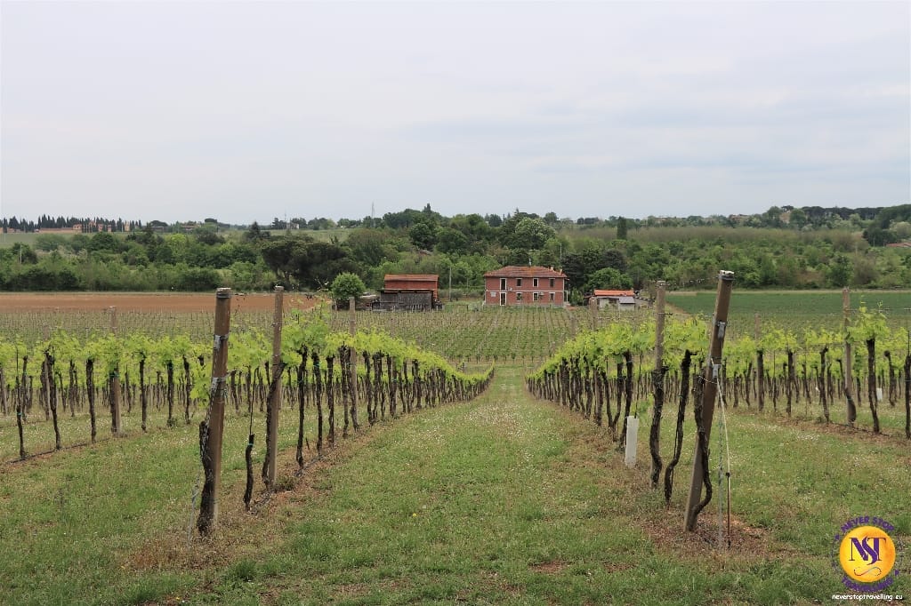 Buiten Bologna tref je vele wijngaarden aan, dus vele wijnranken sieren de landschappen. Veel van deze wijnfarmen bieden ook wijnproeverijtjes aan, we hadden er een aantal uitgezocht en gemarkeerd om onze “wijnproef kunsten” nog eens te activeren, echter vanwege de “dag van de arbeid” was alles gesloten. Geen wijnproeverij dus op deze leuke auto-dag.