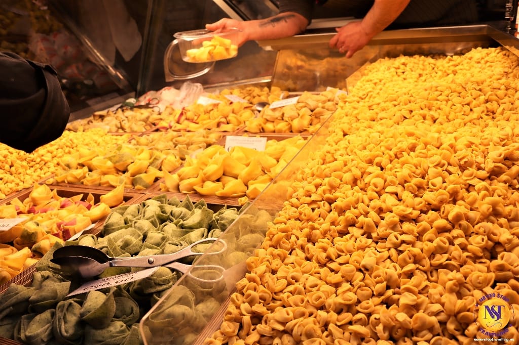 Pasta’s tref je overal aan, maar let op, in Bologna heb je niet zomaar pasta! De pasta’s hier moeten aan bepaalde keurmerken voldoen en worden bijna allemaal met de hand gemaakt. Tijdens de tour mogen we uiteraard enkele pasta soorten proeven en ja, dit zijn echte pasta’s.