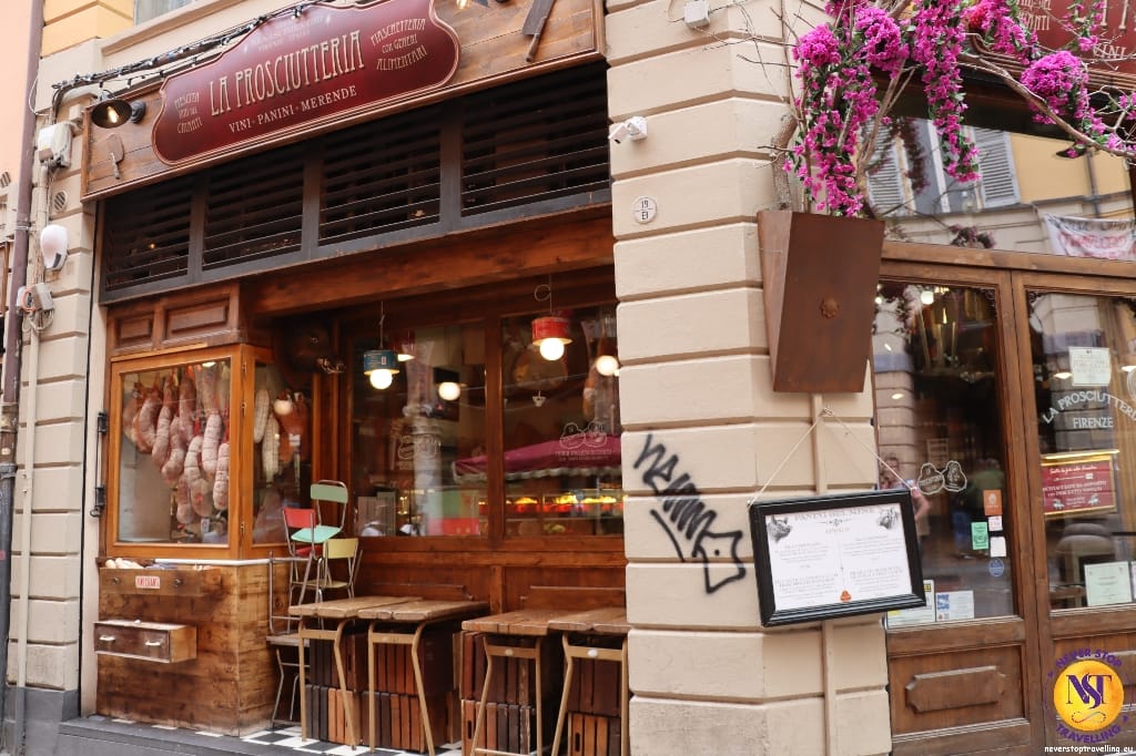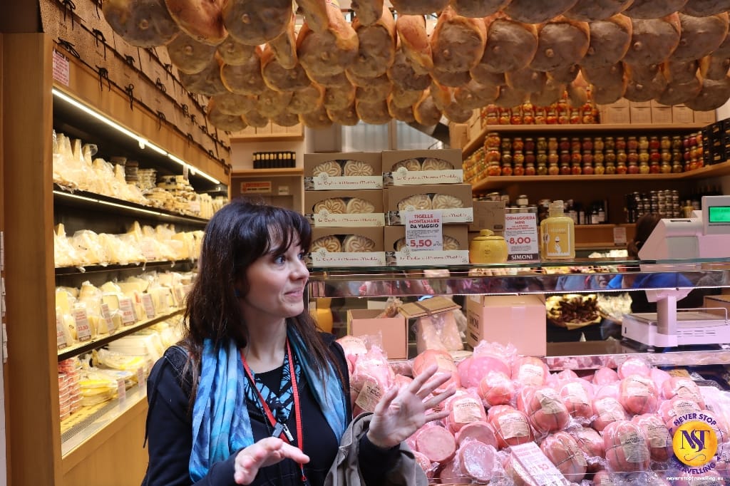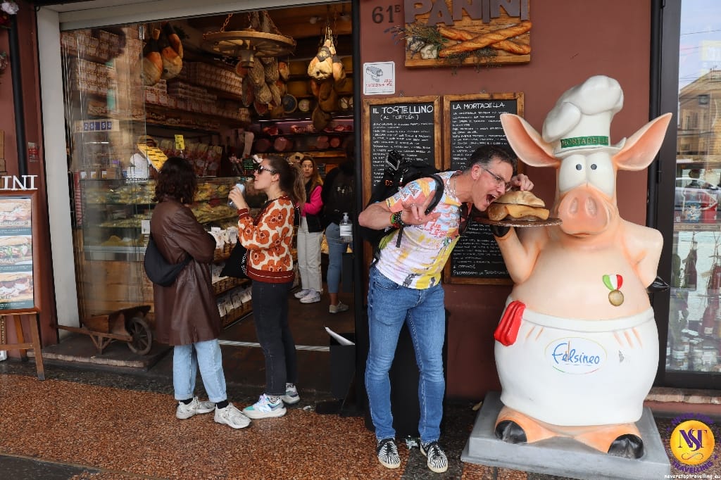 Aanrader! Laat ons een leuke foodtour voor je boeken, Bologna is echt de stad van kwalitatief goed eten. De tekst en uitleg rondom de vele specifieke gerechten mag je niet missen. Onze tour starten om 10.00 uur, met als gevolg dat we in een van de vele steegjes al rond 11.00 uur een glas rode wijn in onze handen hadden vergezeld met een broodje varkensragout. La Grassa staat voor vetrijk eten. Het belangrijkste feest in Bologna heet dan ook het “vlees feest”. Vegetarische gerechten zijn overal te krijgen maar Bologna is wel een vlees stad. Onze leuke gids was goed op de hoogte van alle details over het eten. Een interessante (proef)stop, bij een winkel waar ze vinegar uit Modena verkochten. Hier kun je de diverse smaken proeven/testen, sommige zitten tussen de 12 en 25 jaar op houten vaten. Hoe ouder hoe beter en dat proeven we.