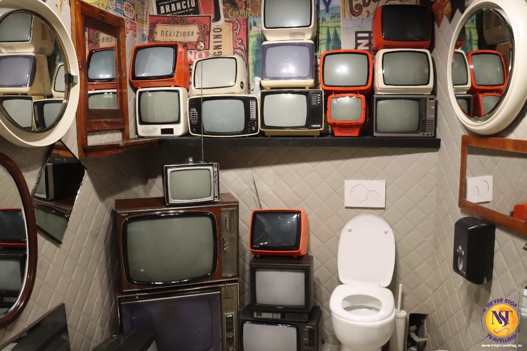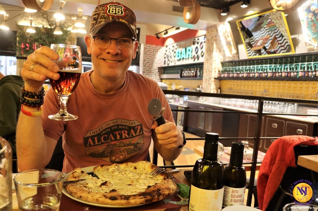Nabij de two towers bevindt zich Eat Pizza Make Love, een erg leuk ingericht restaurant met de gaafste WC die we ooit zagen. Of alle TV’s je daar bekijken blijft een vraagteken…
