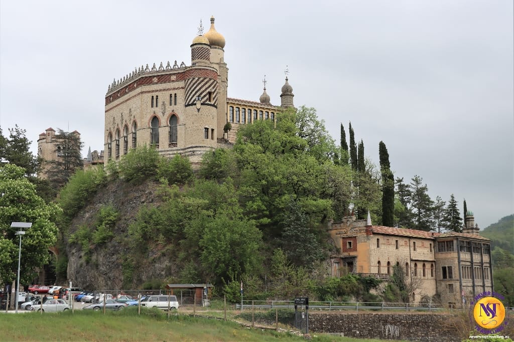 Onze eerste stop: Rocchetta Mattei, een fort gebouwd in de tweede helft van de 19e eeuw , dat verschillende stijlen op een eclectische manier vermengt, van middeleeuws tot Moors. Het is gelegen in de Toscaans-Emiliaanse Apennijnen, op een heuvel 407 meter boven de zeespiegel, in de plaats Savignano, in de gemeente Grizzana Morandi. La Rocchetta was het huis van graaf Cesare Mattei, een geleerde, politicus en autodidactische arts die de grondlegger was van elektro-homeopathie, een praktijk gebaseerd op homeopathie.