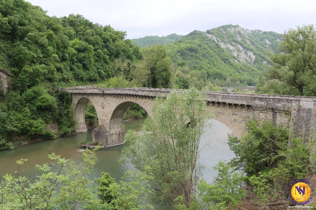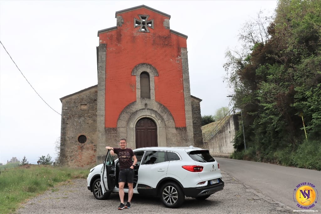 Leuke voor de afwisseling is een dagje met de auto er op uit, je krijgt zo ook een beeld van de omgeving van de stad. In dit geval kozen we helaas voor een regenachtige dag, maar niet getreurd want het weer kunnen we niet veranderen en “als het regent zorg dan voor een goede bui”. Dus met de huurauto op pad, rustig op de weg want het is 1 mei en op die dag wordt in Italië de dag van de arbeid gevierd, wat een officiële feestdag is. Nadeel is wel dat er op die dag ook veel gesloten is. We rijden Bologna uit en rijden al snel door schitterende bergachtige landschappen. Leuke, kleine plaatsjes, welke verstopt zijn tussen de bossrijke omgeving sieren het gezichtsveld.