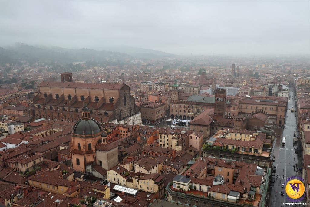 De torens van Bologna zijn een groep middeleeuwse bouwwerken. De twee meest prominente die nog over zijn, bekend als de Twee Torens, zijn een herkenningspunt van de stad. Je de Asinelli toren bezoeken, zorg wel dat je tijdig je entree regelt want de toegang is soms dagenlang volgeboekt. Natuurlijk trotseer je de 498 traptrede naar boven toe. Helaas was het weer wat bewolkt/regenachtig ondanks dat waren de uitzichten van bovenaf fenomenaal.