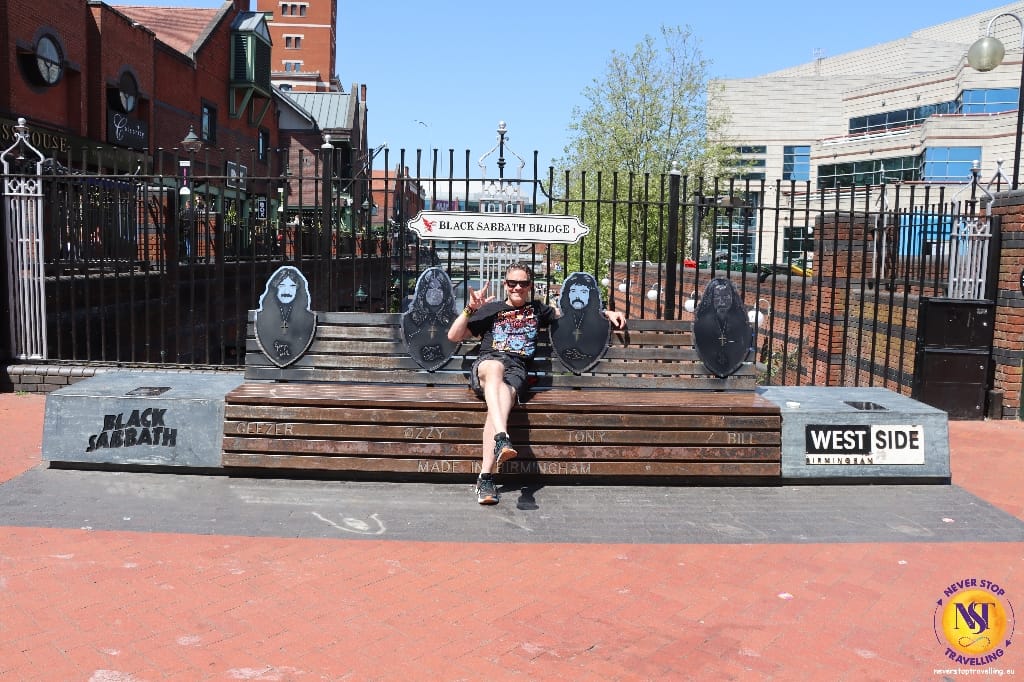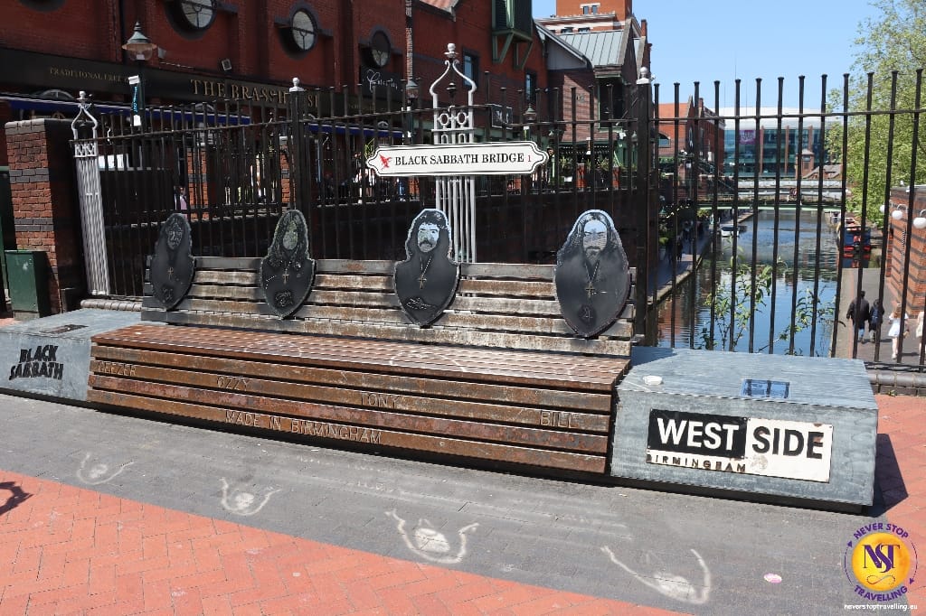 In Birmingham is de Heavy Metal ontstaan, de Black Sabbath Bench is een eerbetoonattractie ter ere van de metal band Black Sabbath uit Birmingham. Het is gelegen aan Broad Street, boven de brug over Canal Street, ook vernoemd naar de band. Black Sabbath is een heavy metal band uit Birmingham, opgericht in 1968. De leden zijn Ozzy Osbourne (zanger), Tony Iommi (gitarist), Geezer Butler (bassist) en Bill Ward (drummer). De bank werd in 2019 voor het publiek geopend en is sindsdien een populaire plek voor de lokale bevolking en toeristen! Als Heavy Metal liefhebber mag je foto op deze bank natuurlijk niet ontbreken.