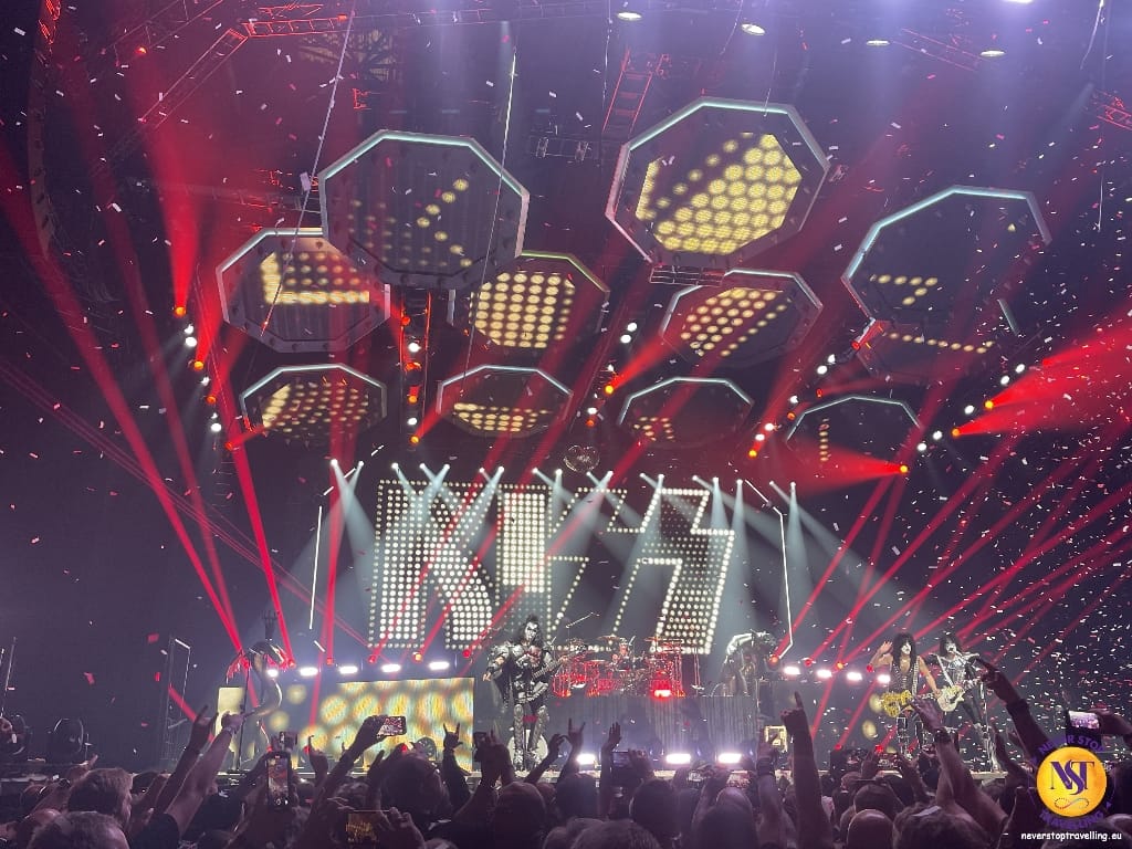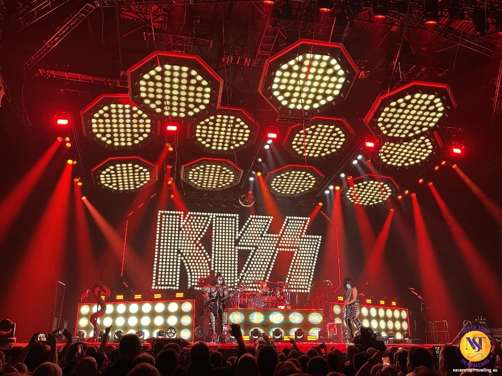 Op 5 juni is het dan zover, het laatste KISS concert in Birmingham! “This is the last time we’re all together” aldus Paul Stanley. Even door the Wild Things, die we ook al eens op de KISS Kruise zagen en Skindred heen worstelen2, de laatste krijgen de handjes goed op elkaar met een overhype zanger, bekoren kan het me niet echt. Zodra het KISS doek omhoog wordt getakeld weten we dat het niet lang meer gaat duren, na de bekende klanken van Led Zeppelin knallen de alom bekende woorden “Allright Birmingham….” uit de speakers. De stage is breed opgezet en met Detroit Rock City is meteen duidelijk wat voor avond dit gaat worden, wauw! Paar schoonheidsfoutjes maar het is dan ook het eerste concert van de tour, die mogen de pret ook niet drukken. Tot de laatste confetti snipper en klanken is het genieten. KISS Destroys Birmingham again! Eerste klap is een daalder waard zeggen ze wel eens, op naar de volgende 12 shows. Next Stop: Praag