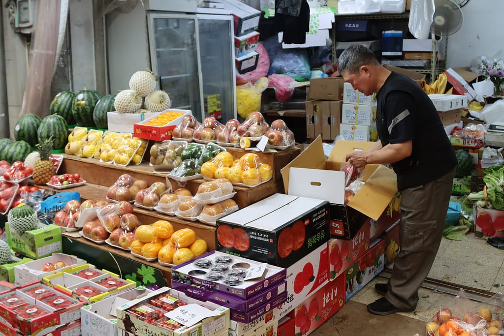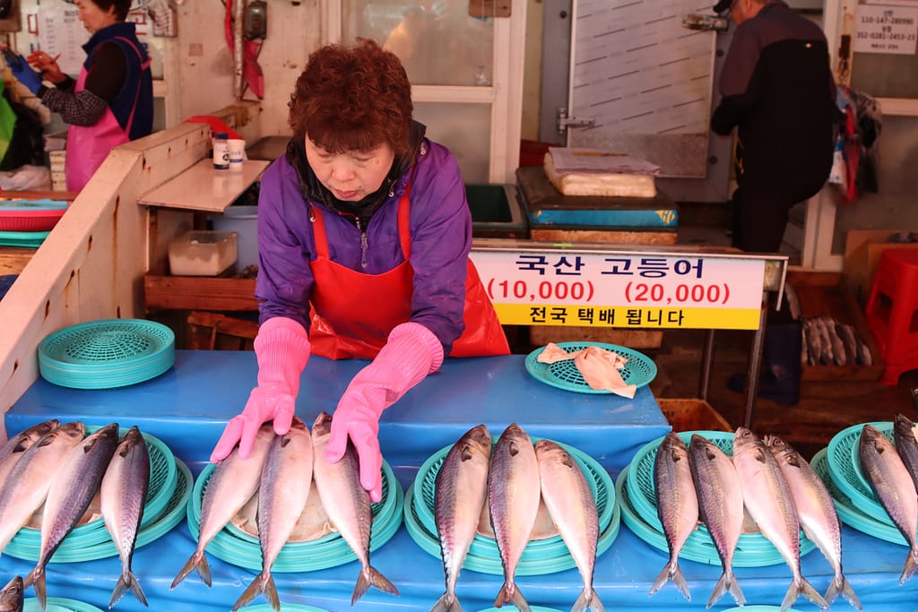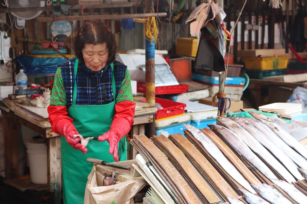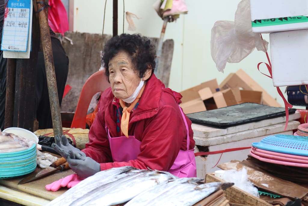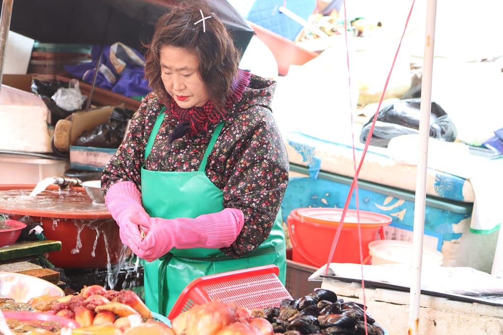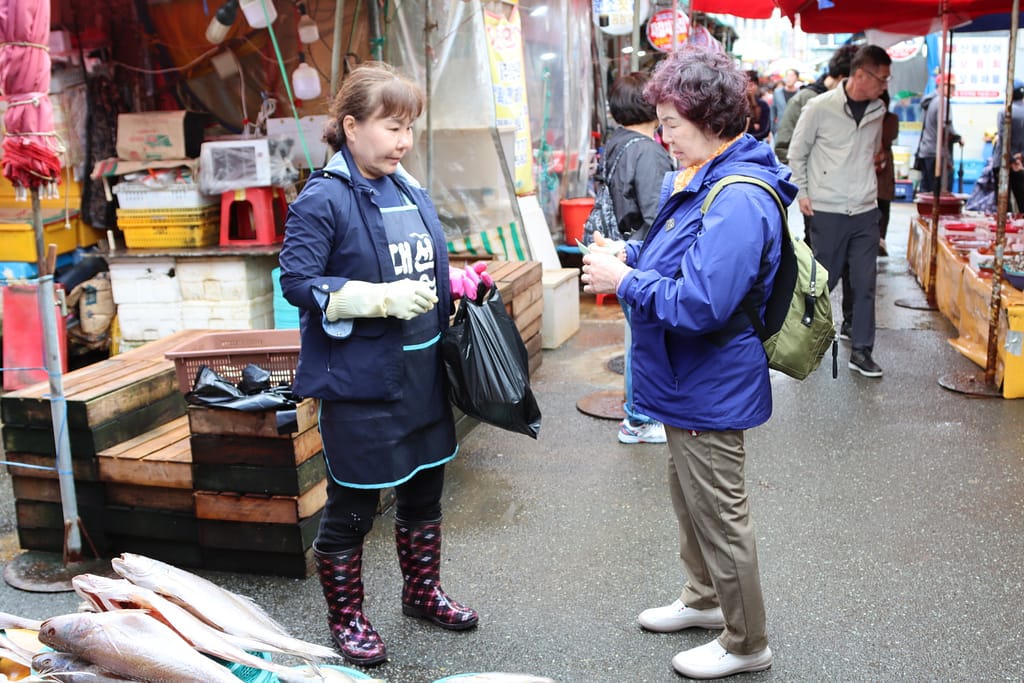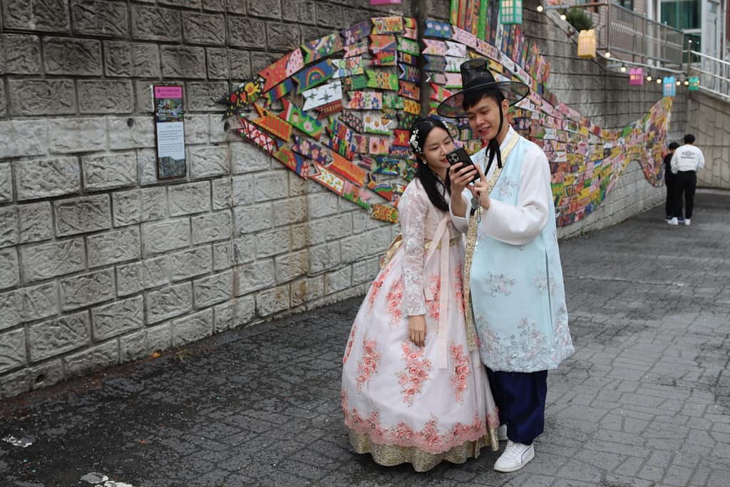 Onze laatste stop is Busan – een levendige havenstad met karakter. De tempel aan zee, Haedong Yonggungsa, is prachtig – zelfs in de regen. We wandelen langs zandsculpturen op het strand en lunchen tussen de vissers op de grootste vismarkt van Korea. Maar het kleurrijke hoogtepunt is het Gamcheon Culture Village: een artistieke wijk vol schilderingen, trappen, doorkijkjes en verrassende hoekjes. Alsof je door een levend kunstwerk loopt. Foto’s maken, koffietjes drinken, even verdwalen – dit is creativiteit in zijn puurste vorm.