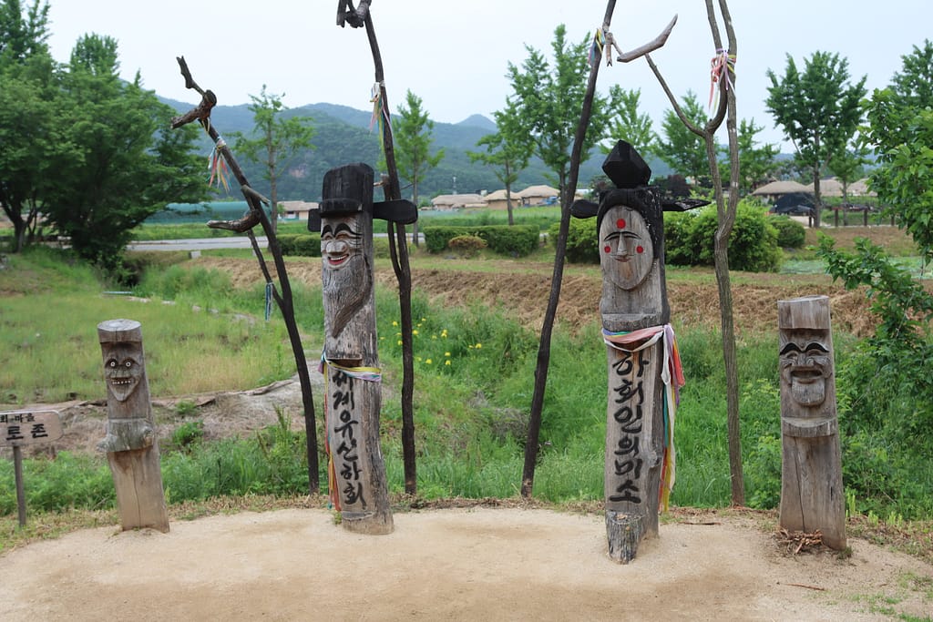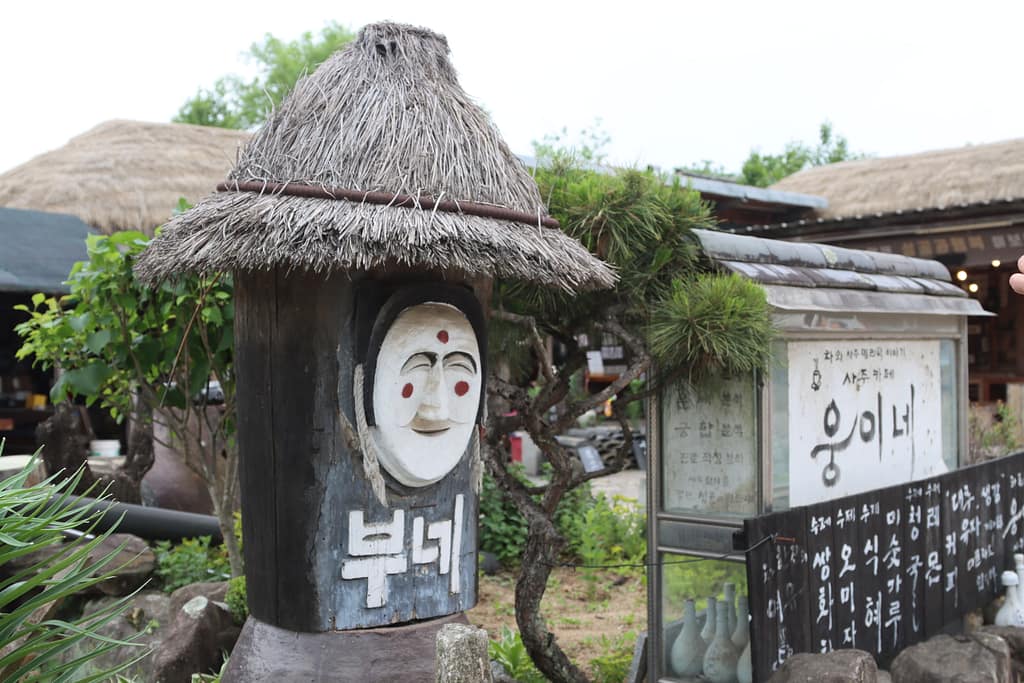 Dan laten we de stad achter ons en reizen we naar Andong, bekend om zijn culturele erfgoed. We dwalen tussen de traditionele huizen van het Hahoe Folk Village en genieten van de rust en de groene omgeving. De houten maskers, uitgesneden in gekke vormen, brengen het verleden tot leven. Als lunch proeven we jimdak: een hartige kipstoof met glasnoedels – comfort food op z’n Koreaans.
