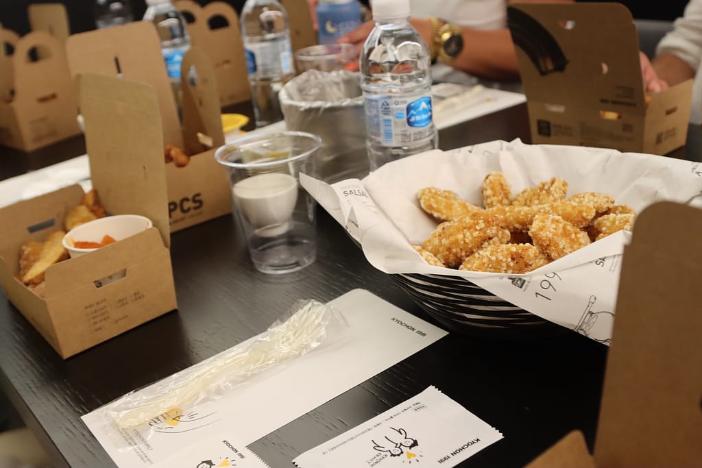 Dan Hebben we een workshop kipnuggets marineren en eten; in Zuid-Korea is kip in vele vormen heel populair!