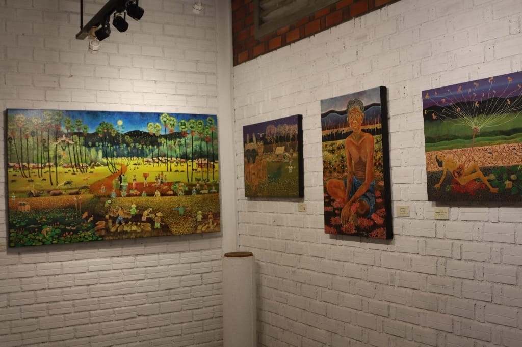 Rustige dag, we vertrekken om 09:30 uur vanuit het hotel. We bezoeken de Romcheik Art Space van lokale artiesten die de kunst maken.