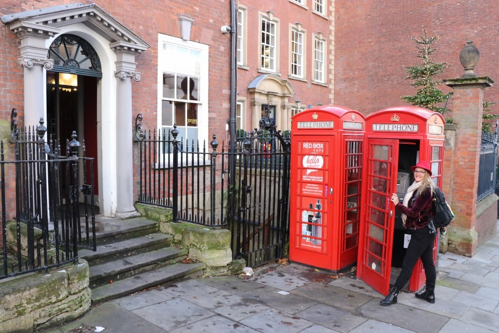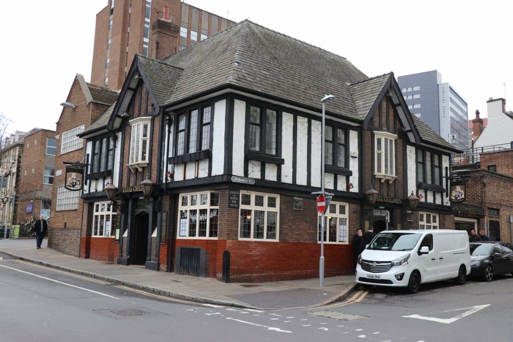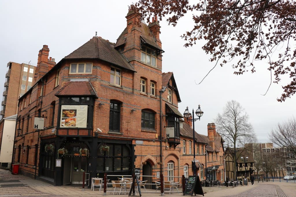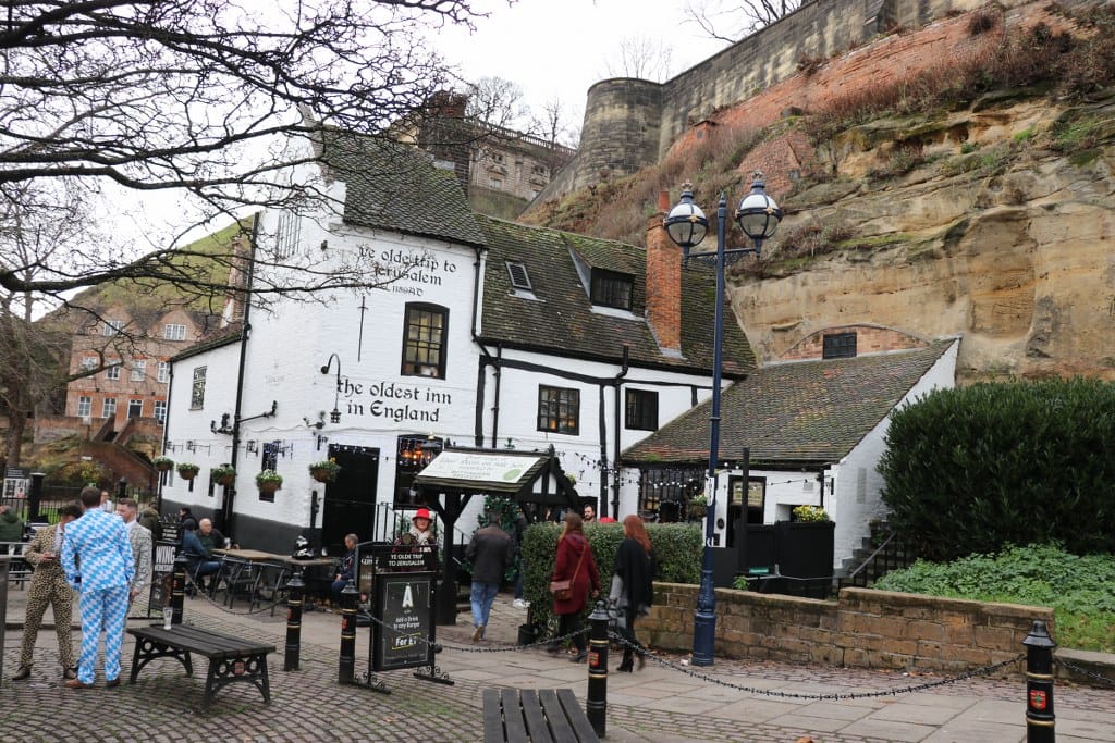 7 december: Goedemorgen of beter gezegd, goedenacht! Om 02.15 uur staat de wekker in Bergeijk-City. M’n meiske ophalen in Eersel en op naar Dusseldorf. Om 07.00 uur vliegen we met EW9336 van Düsseldorf (DUS) naar Birmingham (BHX) alwaar we rond 07.30 uur (lokale tijd) landen, een uurtje tijdverschil met NL dus. Op het vliegveld kopen we treinkaartjes naar Nottingham, maar we moeten eerst naar station Brimingham New Street, van daaruit met de trein naar Nottingham. Rond 11.15 uur komen we daar aan en doen we eerst ff een bakkie Starbucks. Het is fris maar droog dus we lopen naar ons hotel, ongeveer 1,4 km. We slapen de komende twee nachten in het Strathdon Hotel in Nottingham. Helaas is onze kamer nog niet gereed, dus we laten onze bagage achter en eerst maar eens een pub opzoeken voor de lunch, het is immers 12.00 uur geweest.