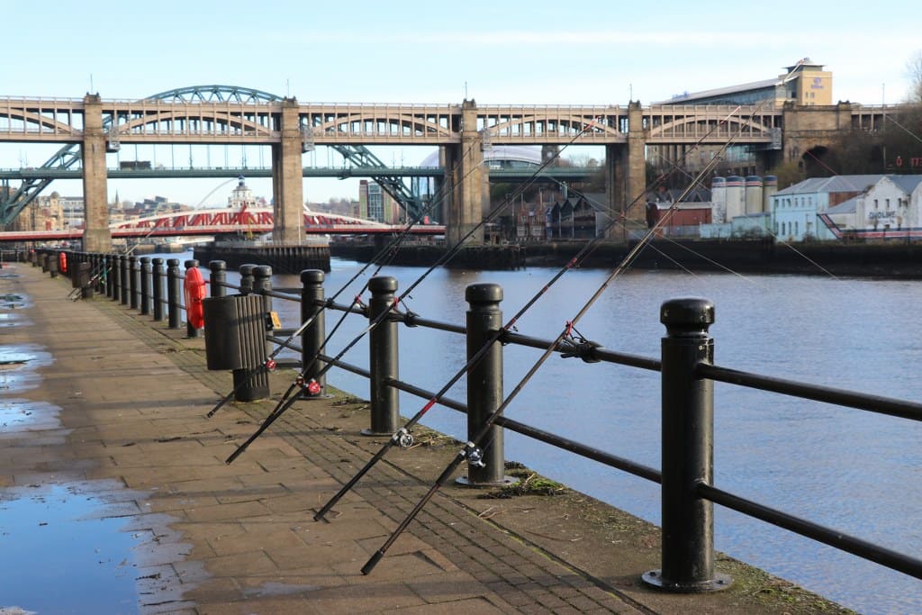10 december: Goedemorgen NewCastle. Omstreeks 08.00 uur gaan de luikjes weer open, ontbijttijd in ons hotel. Gelukkig hebben we vandaag nog een dagje Newcastle op de agenda staan want van deze stad hebben gisteren zo goed als niets gezien. Sightseeing Newcastle dag dus! Uitzicht vanuit onze hotelkamer over de Metro Radio Arena, zoals gemeld lagen we dus lekker dichtbij de concertzaal. Vissers zijn ook hier midden in de stad actief met vissen in de Tyne.
