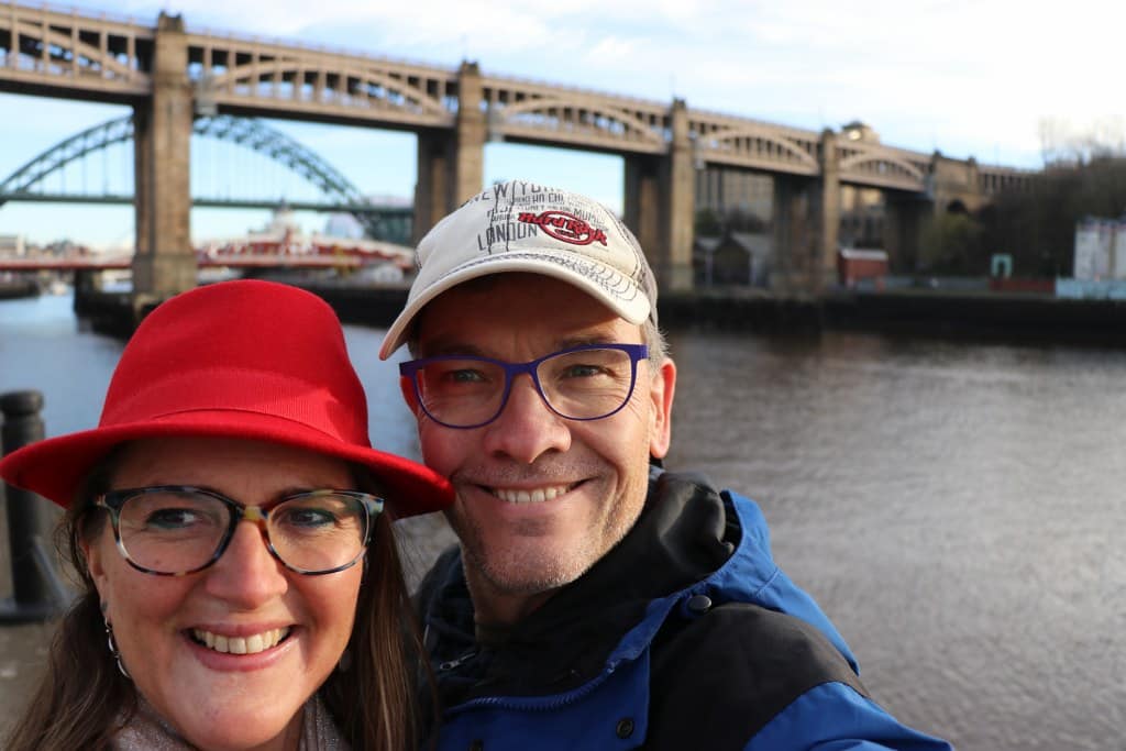 Onder de Tyne Bridge vinden we een leuk koffietentje, tijd voor koffie dus!