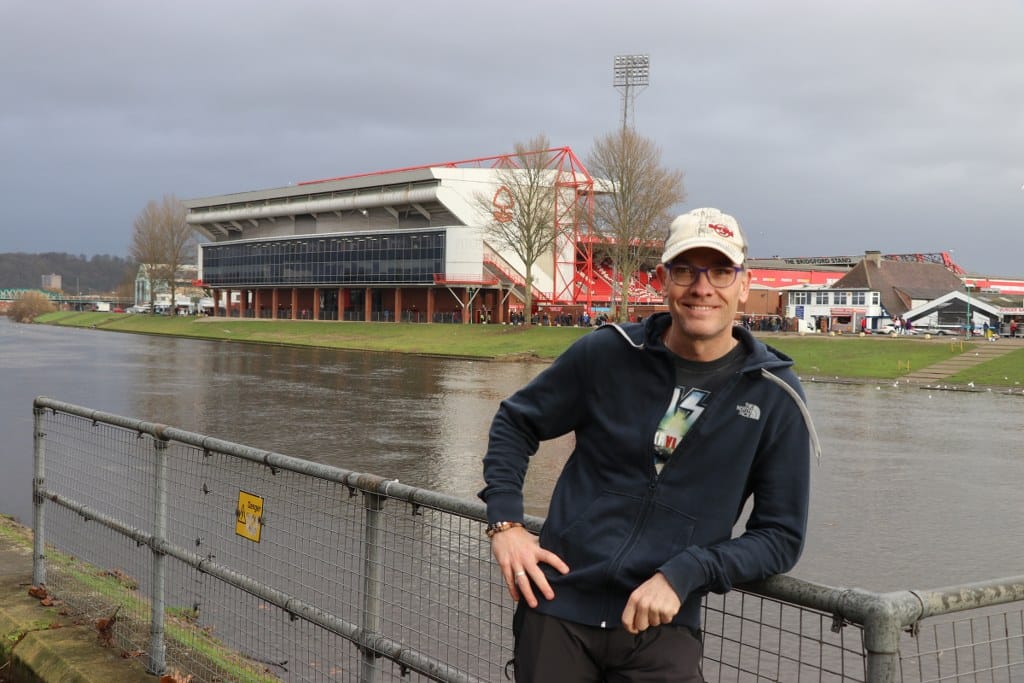 Het stadion van Nottingham Forest, City Ground genaamd! Nottingham speelt vanmiddag thuis dus het is lekker druk met supporters, die er allemaal al een aantal pubuurtjes op hebben zitten!