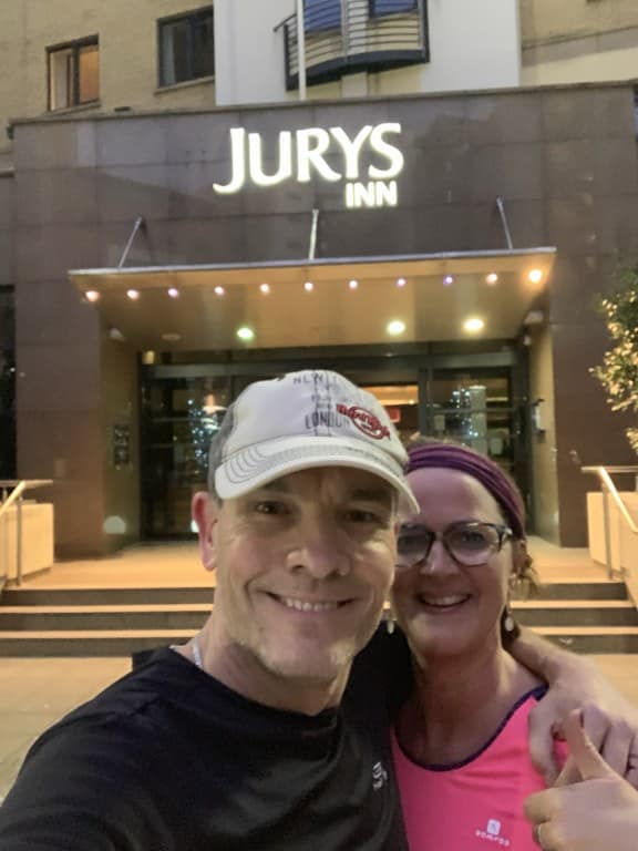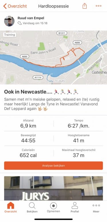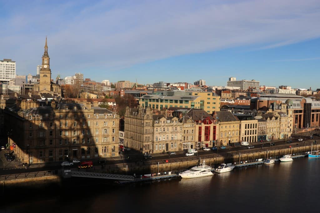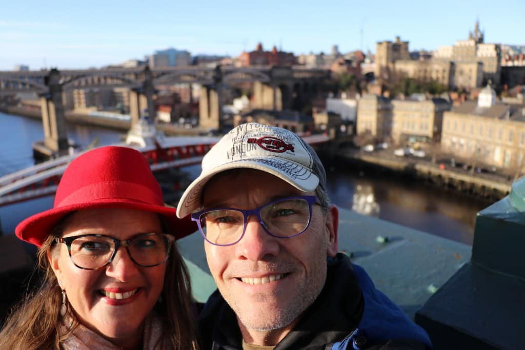 9 december: Goedemorgen Nottingham, Def Leppard day again! Nog wel ff naar NewCastle dan……. Vandaag gaan we met de trein naar NewCastle, yep reizen is vaak ook verplaatsen. Een kostbare aangelegenheid van Nottingham naar Newcastle, het openbaar vervoer is erg duur hier. We moeten via Sheffield, home of Def Leppard. We kunnen direct mee dus tijd voor koffie hebben we niet. Gelukkig zitten de maagjes goed gevuld van het English Breakfast, zoals bekend vult dat wel. Totale reisduur naar Newcastle is toch zo’n 3,5 uur. Maar goed voor iets gaafs moet je ook iets over hebben! We kunnen lopend vanaf het station, eerst Starbucks, want het is maar iets van 700 meter van het centraal station. Komende twee nachten slapen we in het Jurys Inn in NewCastle. En de concertzaal is de buurman, heerlijk! Ook hier geen sportschool in ons hotel, maar op twee minuten afstand zou een “Anytime fitness” aanwezig zijn, waarvan we gebruik kunnen maken. Helaas is deze sinds een maand gesloten, geen fitness dus. Want dan? We gaan lekker stukje hardlopen langs de Tyne rivier. We lopen het tempo van Jolanda en blijven bij elkaar. Toch lekker ff 45 minuten weg geweest in de korte kleding, want we hadden geen rekening gehouden met buiten lopen.