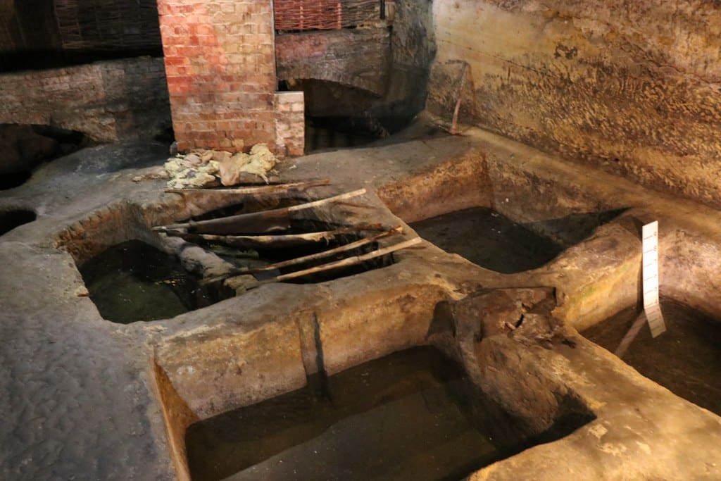 Gaaf is dat Nottingham zo’n 700 caves kent, vele daarvan zijn te bezichtigingen. Op “cave tocht” dus in the Nottingham caves. Vroeger bouwde bijna iedereen een grot onder zijn huis, deze werden voor vele doelen gebruikt. Van kelderopslag, tot lederfabriek, bieropslag voor pubs enz. enz. 400 jaar geleden waren er hier vele malen meer pubs dan anno 2018, huh!? In de oorlog werden deze caves gebruikt als schuilkelder, sommige voor enkele honderden mensen tot zelfs een waar er 9.000 in konden. Als je een huis koopt waar een cave onder zit, is daarna de cave ook automatisch je bezit. Elk jaar worden er nog vele nieuwe caves ontdenkt. Nottingham heet niet voor niets de “City of Caves”, een bezoekje aan een van deze caves is dan ook zeker een must! Hieronder de oude lederfabriek. Destijds werd het leer soepel gemaakt door urine en hondenpoep. Proces duurde destijds een jaar voordat het leer echt soepel was, maar je kunt je voorstellen dat de stank in deze caves niet te harden was!