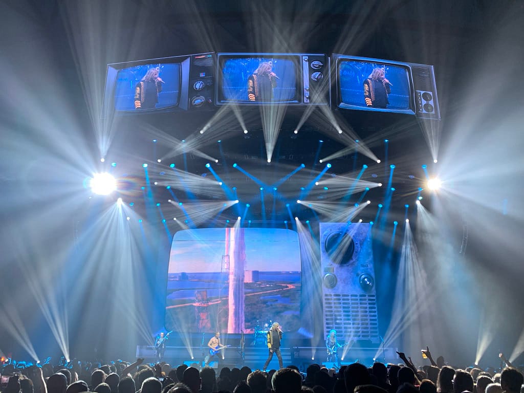 Gaaf Def Leppard shirt, biertje en de zaal in. Leuke arena, 1 ring. Schat in zo’n 8 a 9.000 mensen. Cheap Trick mag aftrappen rond de klok van 19.40 uur. Met knallers als I want you to want me en Surrender, gaat de zaal redelijk uit zijn dank. Mr. Rick Nielsen heeft echt elk nummer een nieuwe gitaar en bij sommige nummers zelfs twee, een forse collectie gitaren zijn er mee overgevlogen. Leuk optreden niet meer dan dat! Complete setlist Cheap Trick, zie HIER.
