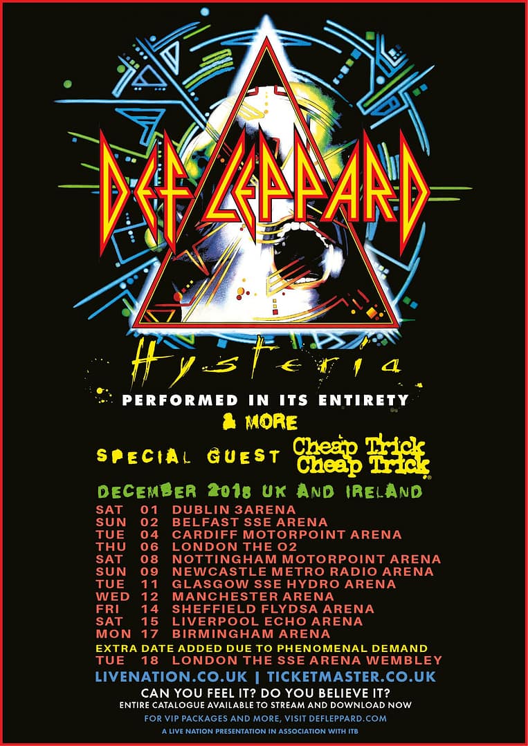 Yep, de muziekliefhebberij gaat (gelukkig) ook over landsgrenzen en brengt ons zo regelmatig op leuke plaatsen. Dit keer is het Def Leppard die ons naar Engeland toe sleept! 7 t/m 11 december 2018, wederom muziek en reis gecombineerd, YEAH!