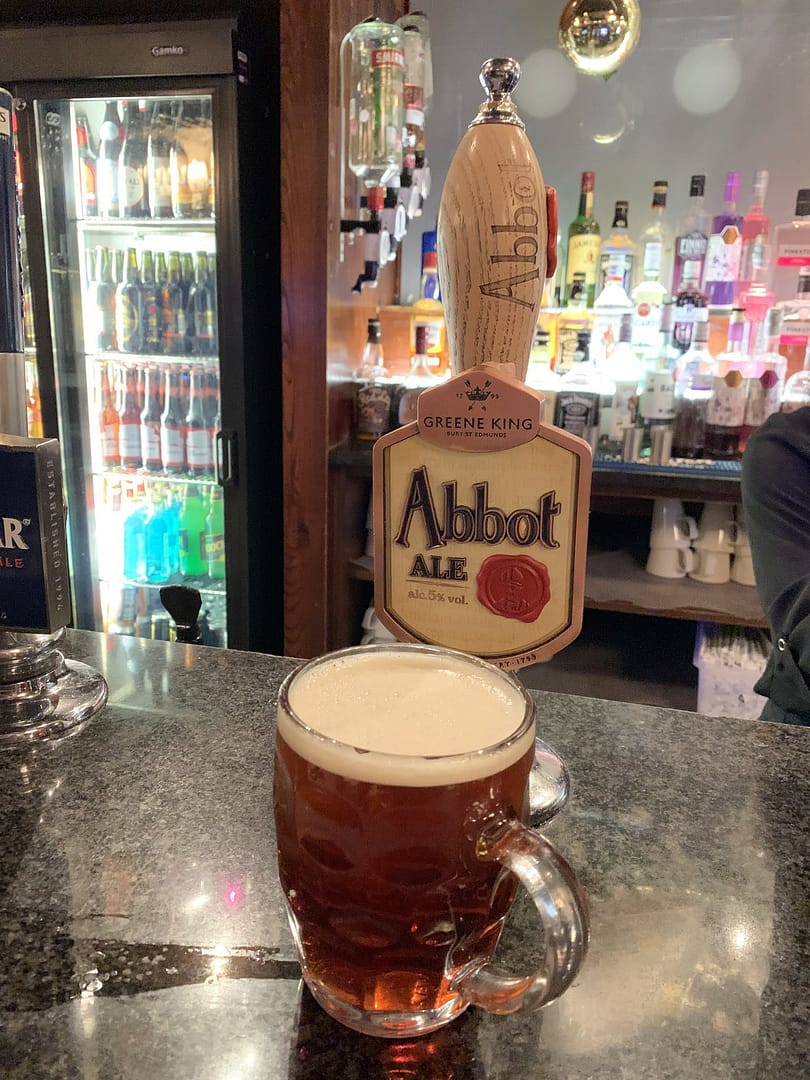 Tegen de klok van 17.00 uur is het tijd voor een hapje en een drankje, we zoeken de Tyne rivier weer op om langs de rivieroever het stadscentrum weer op te zoeken. Ons hotel ligt maar zo’n 500 meter van hartje centrum vandaag dus zover ist nie! We hadden vanmiddag al gezien dat The Qayside een erg leuke pub was, bij toeval (bestaat dat wel?) komen we daar nu ook weer uit dus naar binnen! Er is nog plaats…….. Een “pompbiertje” van de Engelse pomptap, Abbot Ale. Je moet er van houden maar YEAH ik mag die Engelse Ale’s wel! De volgende kleur is zwart en zwart! Guinness time again!